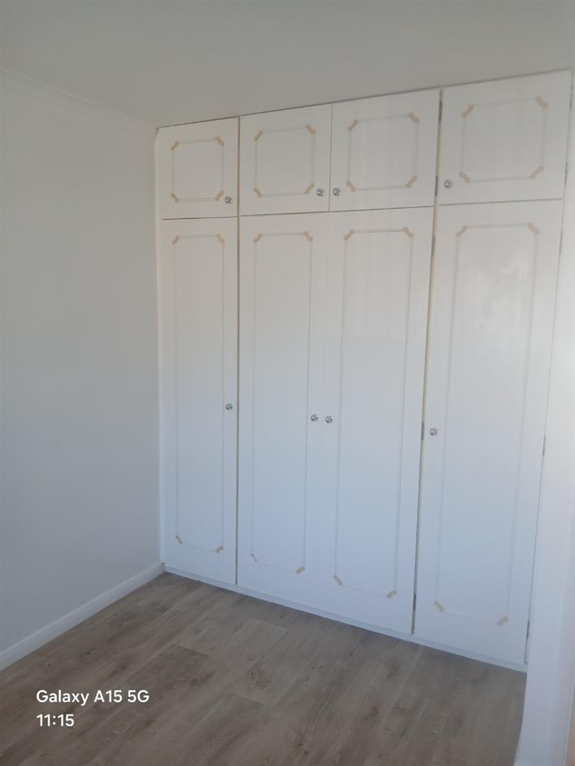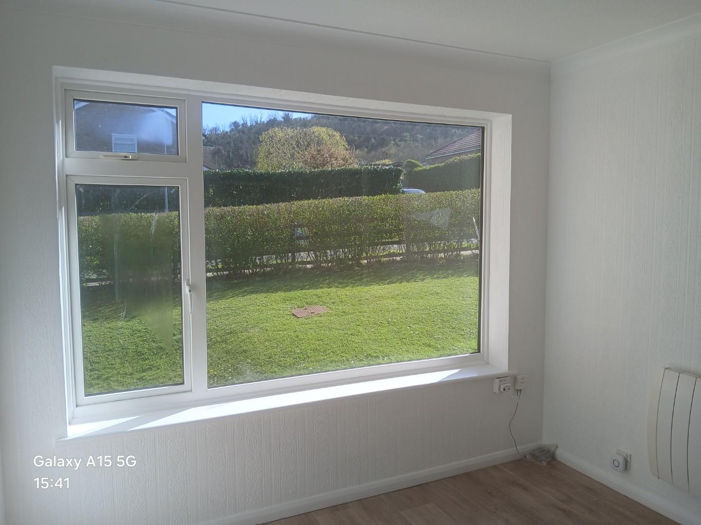 Range of fitted wardrobes to one wall, wall mounted electric heater, double glazed window to front.