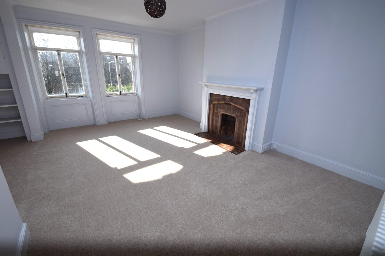 A most impressive room with feature period style fireplace, two radiators, built in shelving.