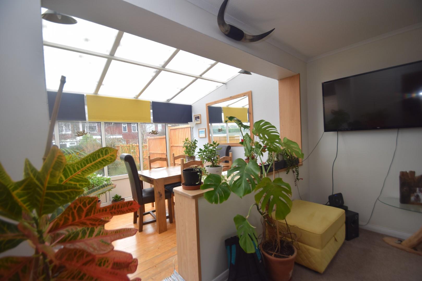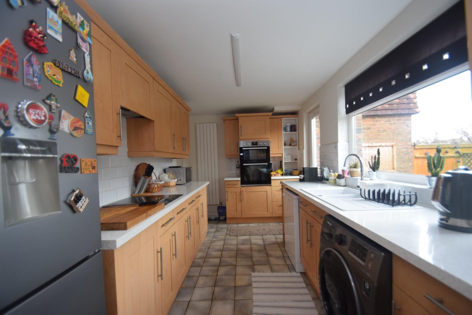 Double glazed window and door to rear garden. Fitted with a range of wall and base mounted units with work surfaces and one and a half bowl sink unit. Fitted electric oven and hob with extractor. Plumbing points and spaces for dish washer and washing machine, space for fridge/freezer. Door to store room (rear of garage.)