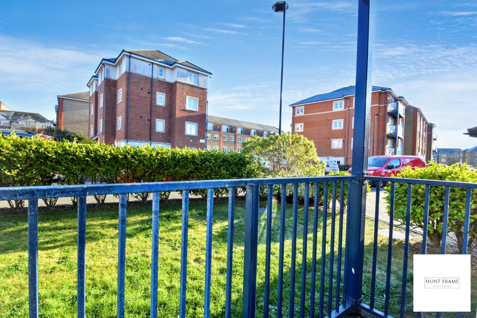 Accessed via the double doors in the sitting room, wooden decked area, balustrading to the front, with an aspect over the communal front gardens.
