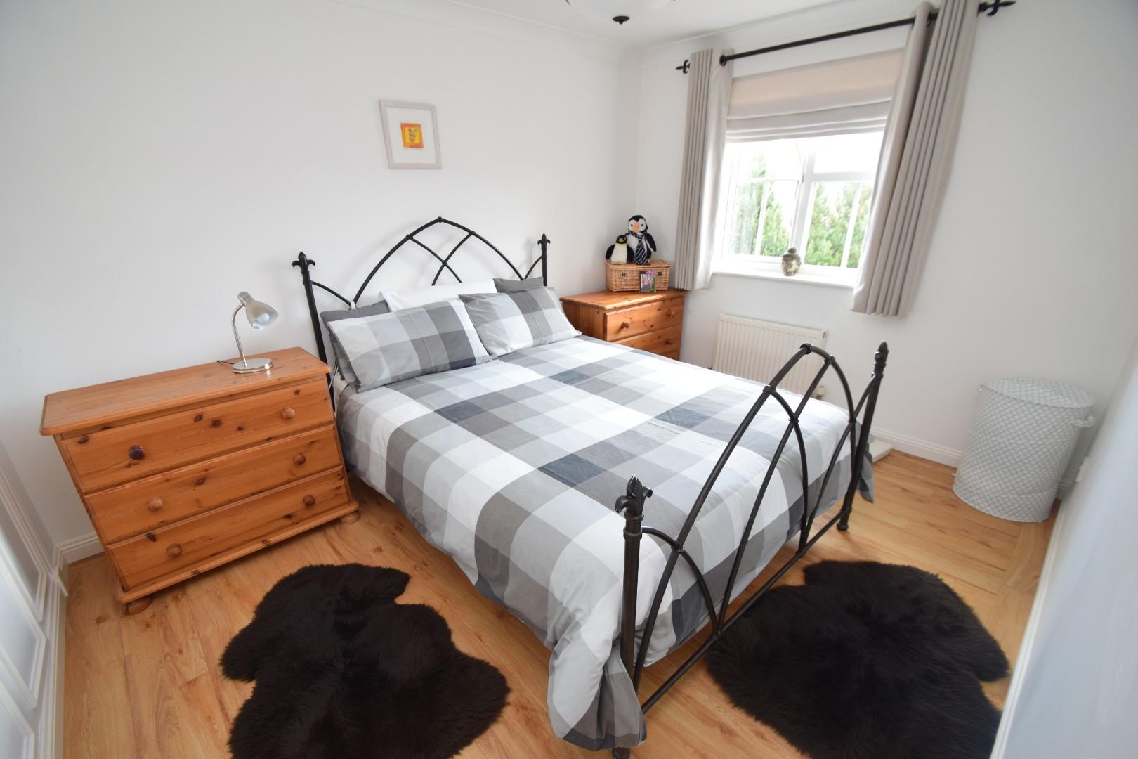 Wood effect flooring, built-in wardrobes, radiator, double glazed window to front.