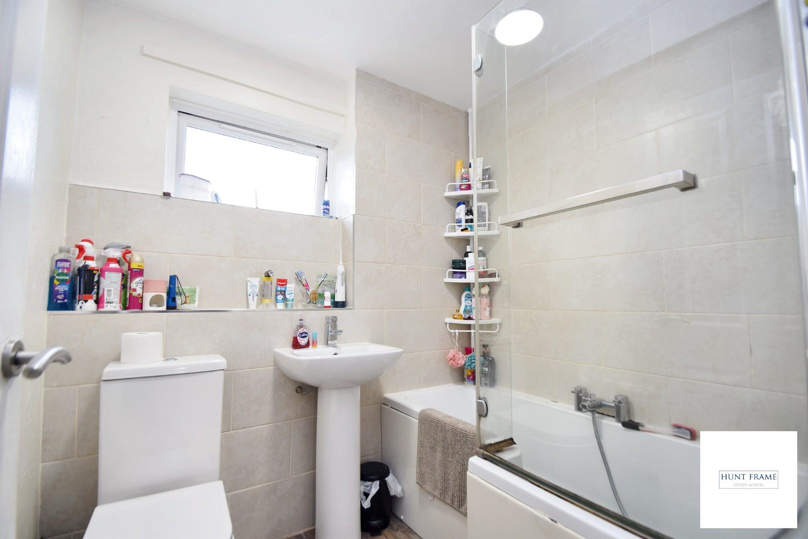 Comprising of a white suite with a panelled bath with hand held shower attachment and electric shower unit above, shower screen, low level Wc and wash hand basin, part tiling to walls, wood effect tiled flooring, radiator, UPVC double glazed window to the front aspect.
