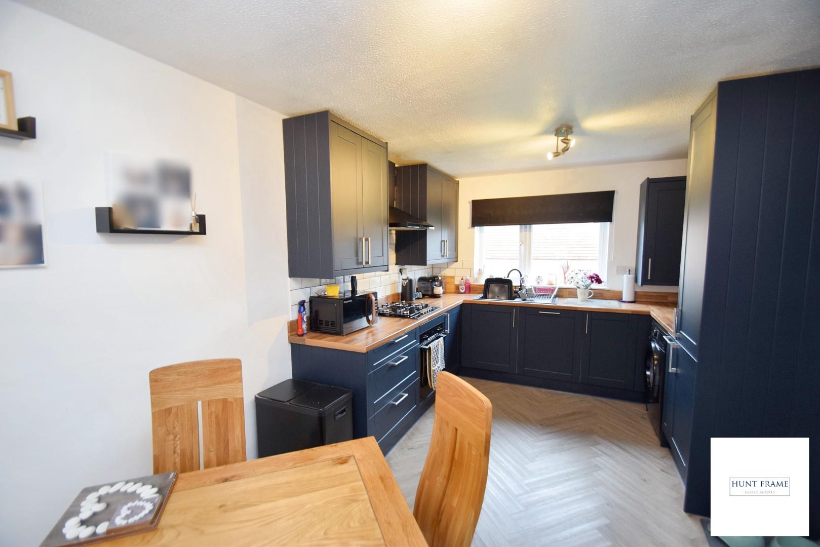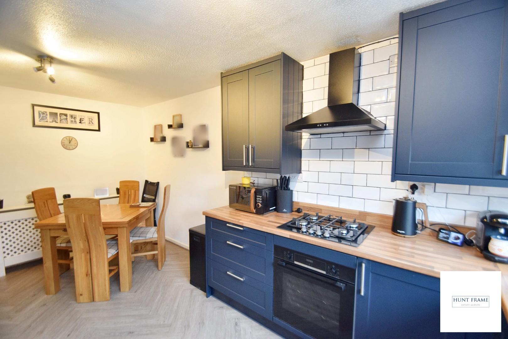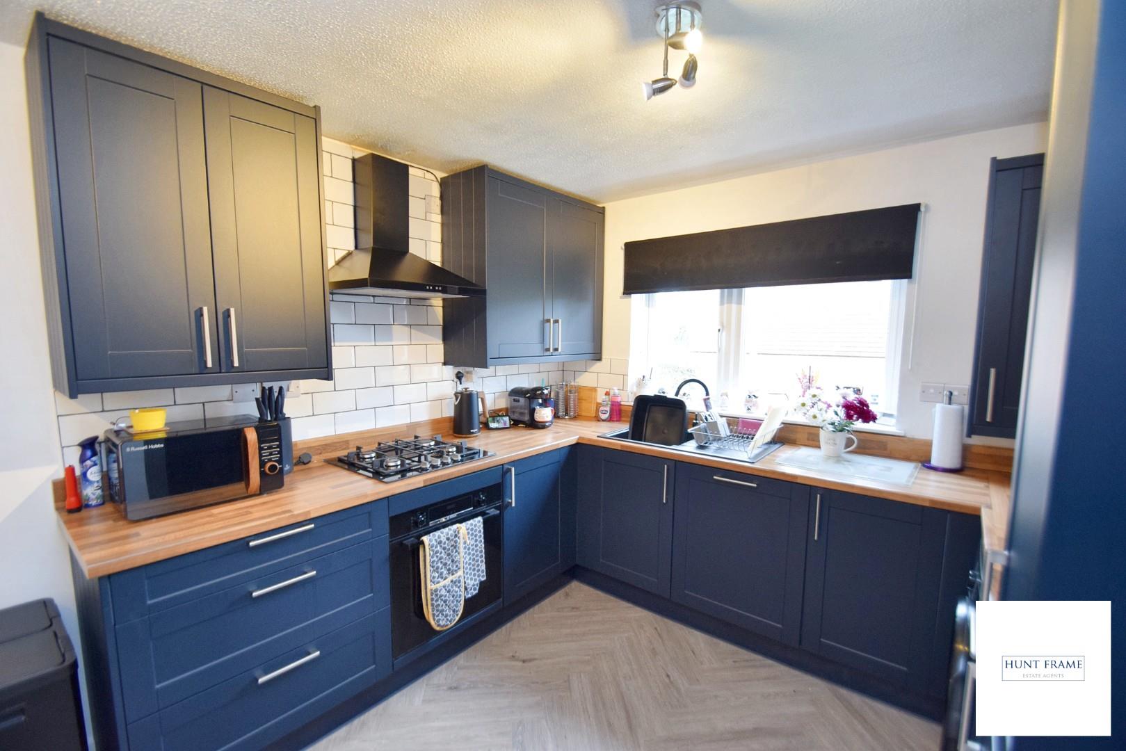 Completely refitted in July 2024 with a lifetime guarantee from Wren Kitchens, fitted with an extensive range of blue fronted wall mounted and floor standing units with wood block worktops and matching upstands, integrated dishwasher and plumbing and space for a washing machine, inset sink unit with a swan neck mixer tap, Victorian style brick tiled splashbacks, fitted single oven with a four ring gas hob and canopied extractor unit over, concealed wall mounted boiler, space for an upright fridge/freezer, space for a breakfast/dining table, radiator with an ornamental cover, replacement vinyl flooring, UPVC double glazed window to the front aspect.
