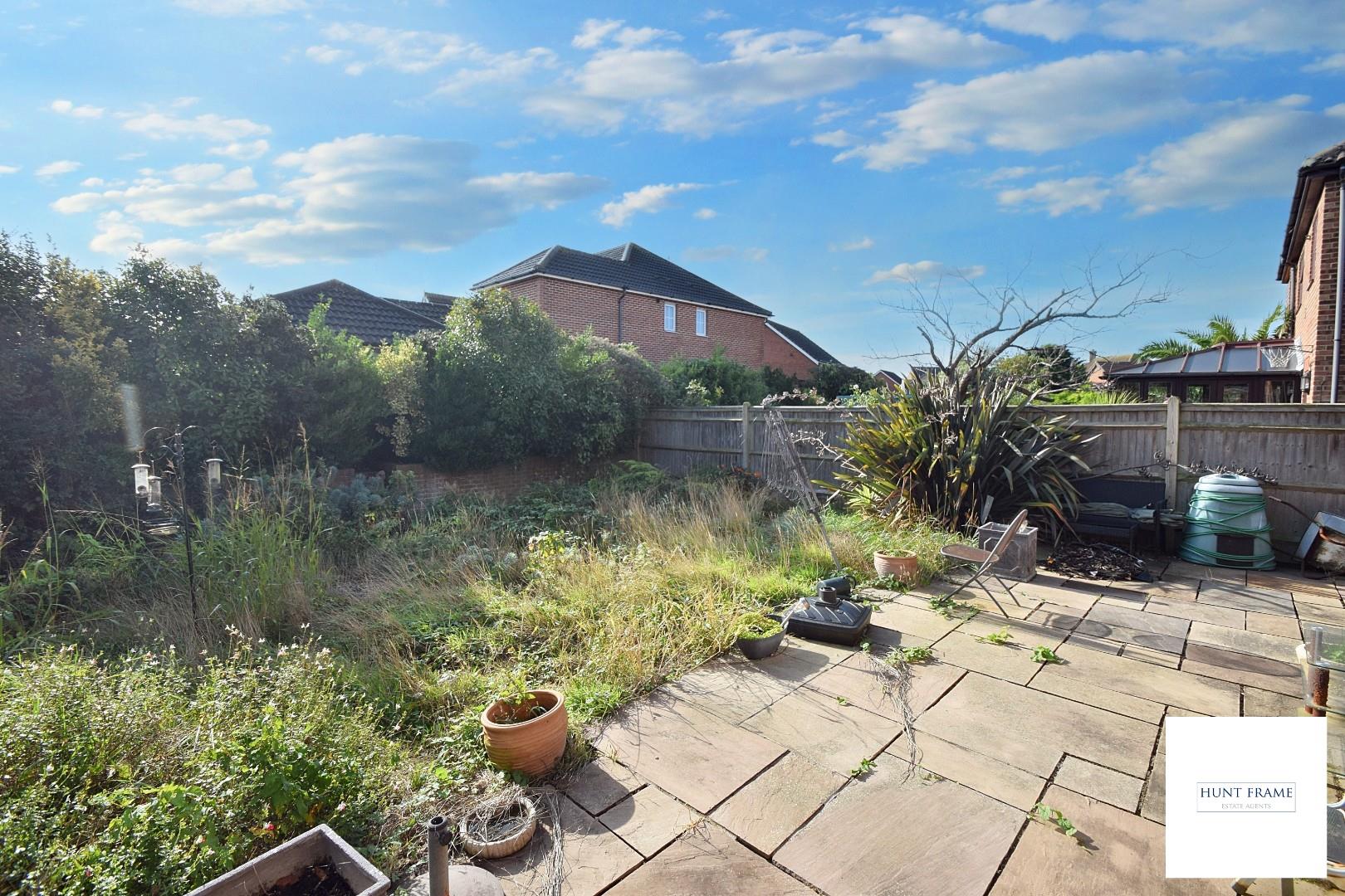Initially laid with a full width paved terrace with the remainder laid to lawn with fenced enclosed boundaries, gated side access, established trees, shrubs and borders, enjoying a southerly aspect.