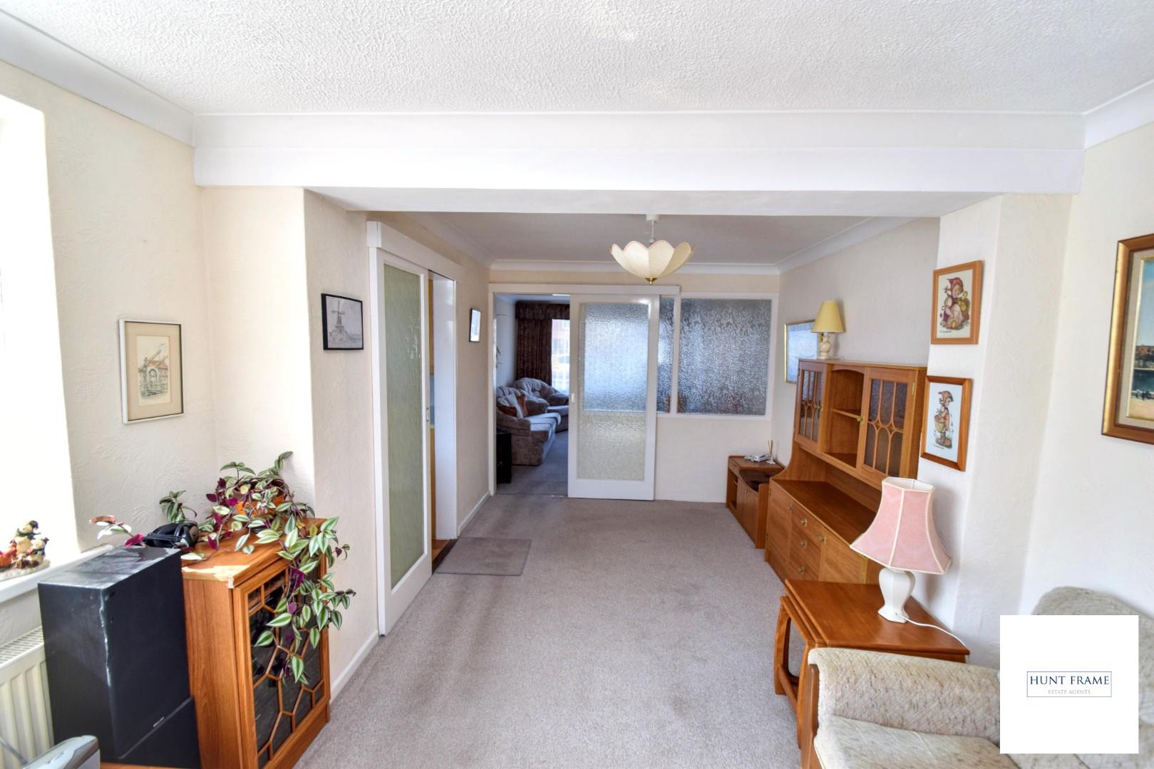 Extended dining room being dual aspect with a window to the side aspect and sliding patio doors overlooking and giving access to the gardens, sliding door to the kitchen.
