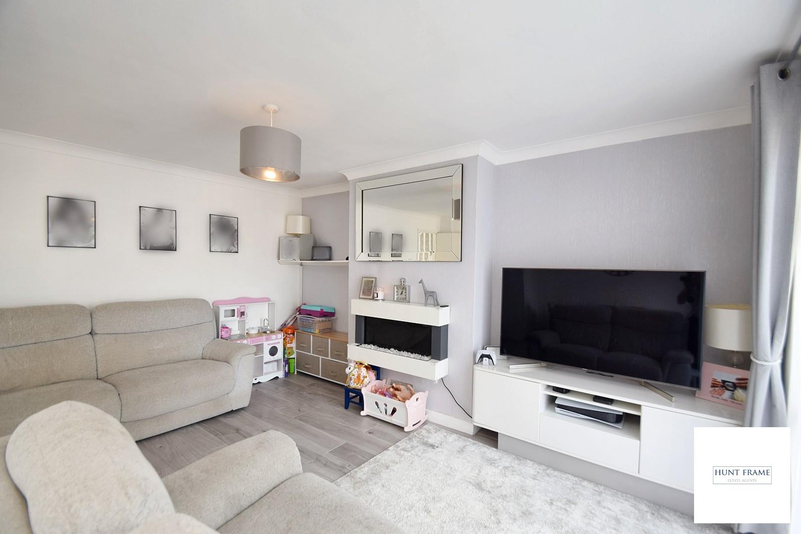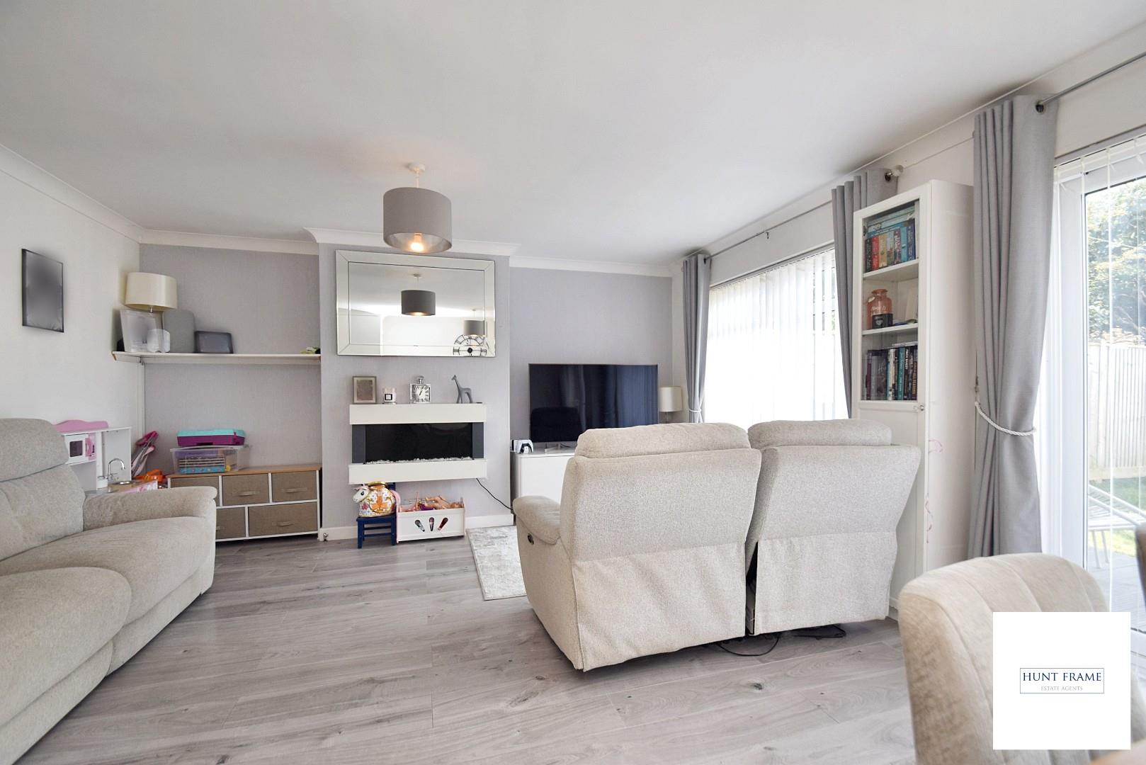 Matching wood effect laminate flooring, large under stairs storage cupboard, radiator, UPVC double glazed window to the rear elevation with matching sliding double glazed doors overlooking and also giving access to deck and lawned gardens.