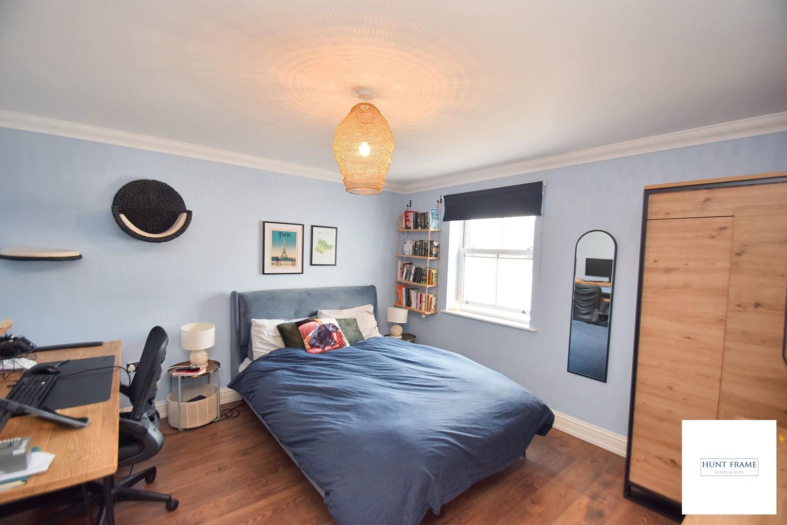 Feature wood panel wall, radiator, wood effect laminate flooring, UPVC double glazed windows overlooking the front aspect.