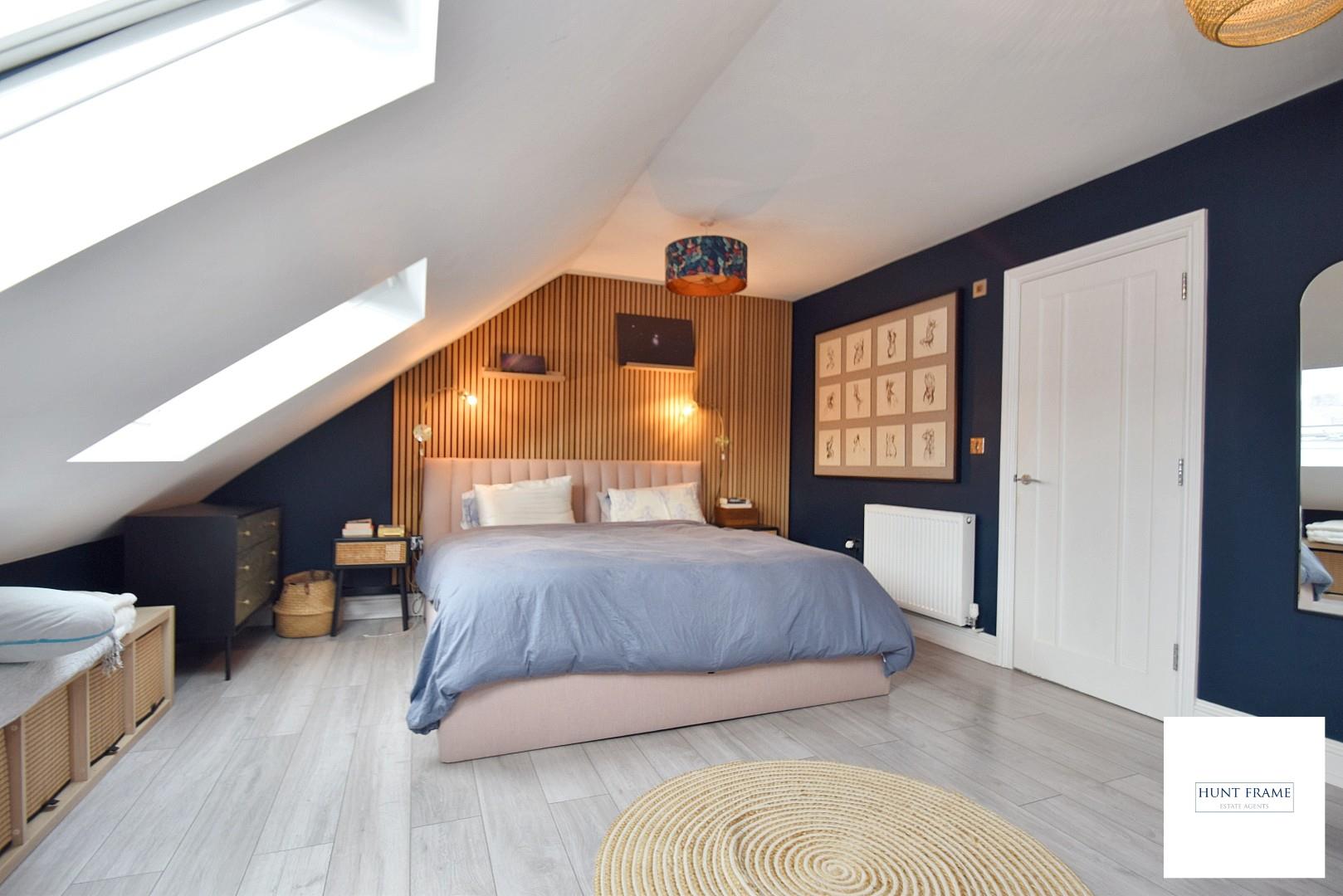 Velux windows to the front elevation, wood effect flooring, feature wood panelling to one wall, radiator, door to the en-suite.