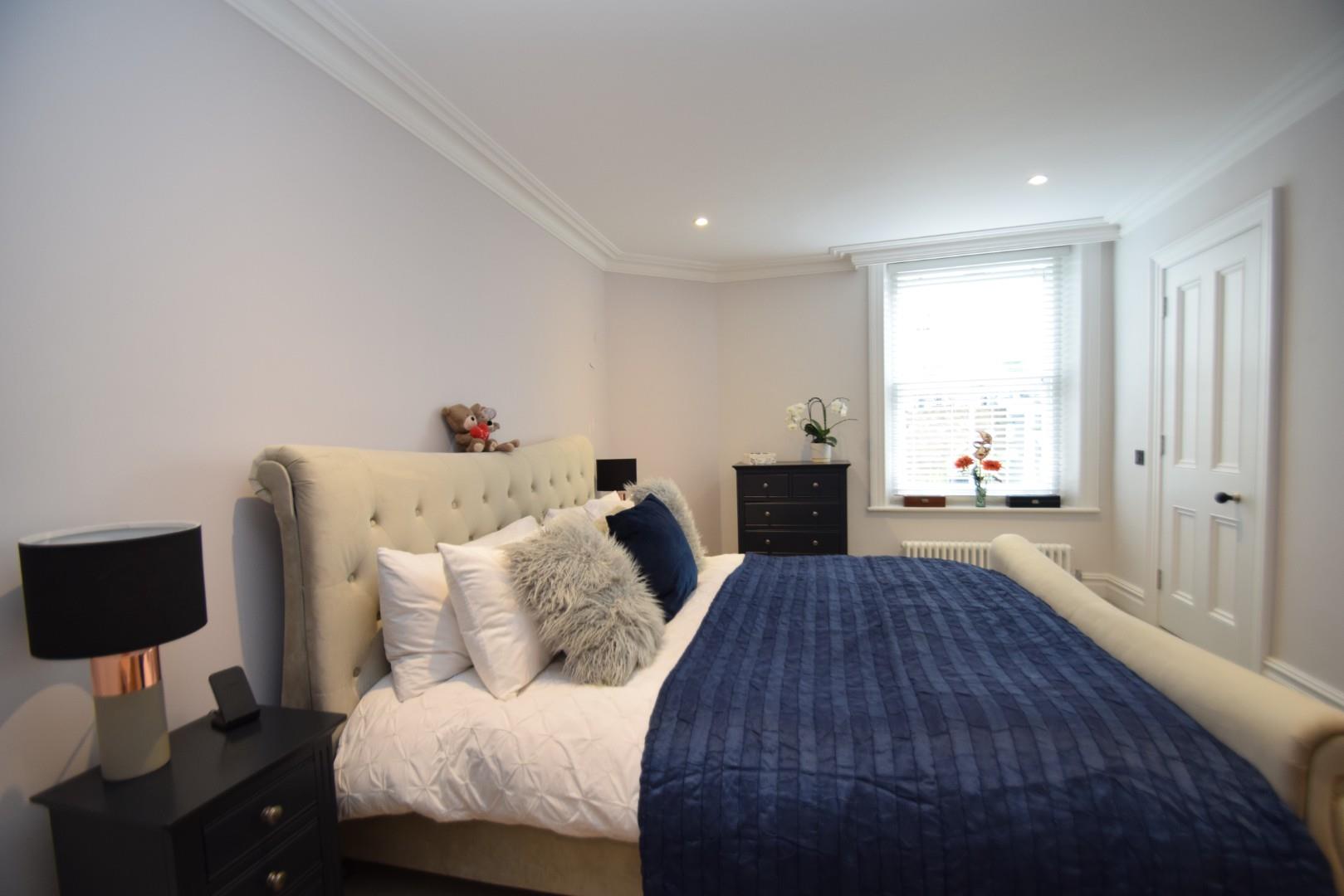 Bay window to front, two radiators, television point, contemporary fitted storage and display units, ornate cornicing.