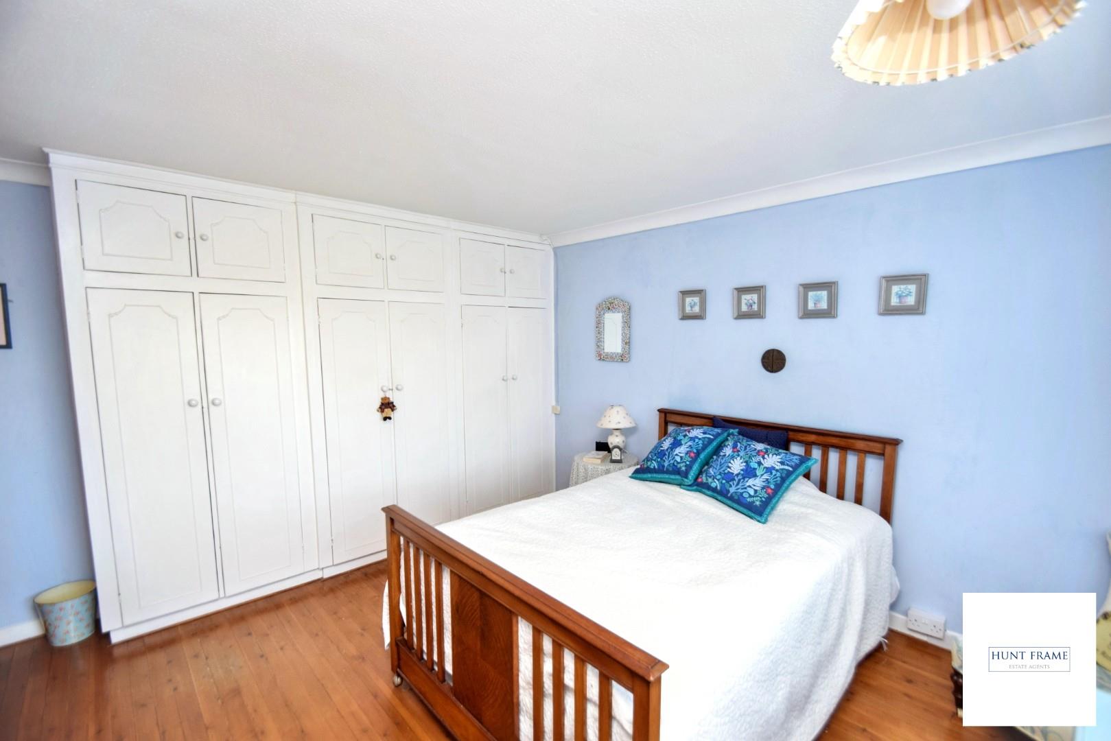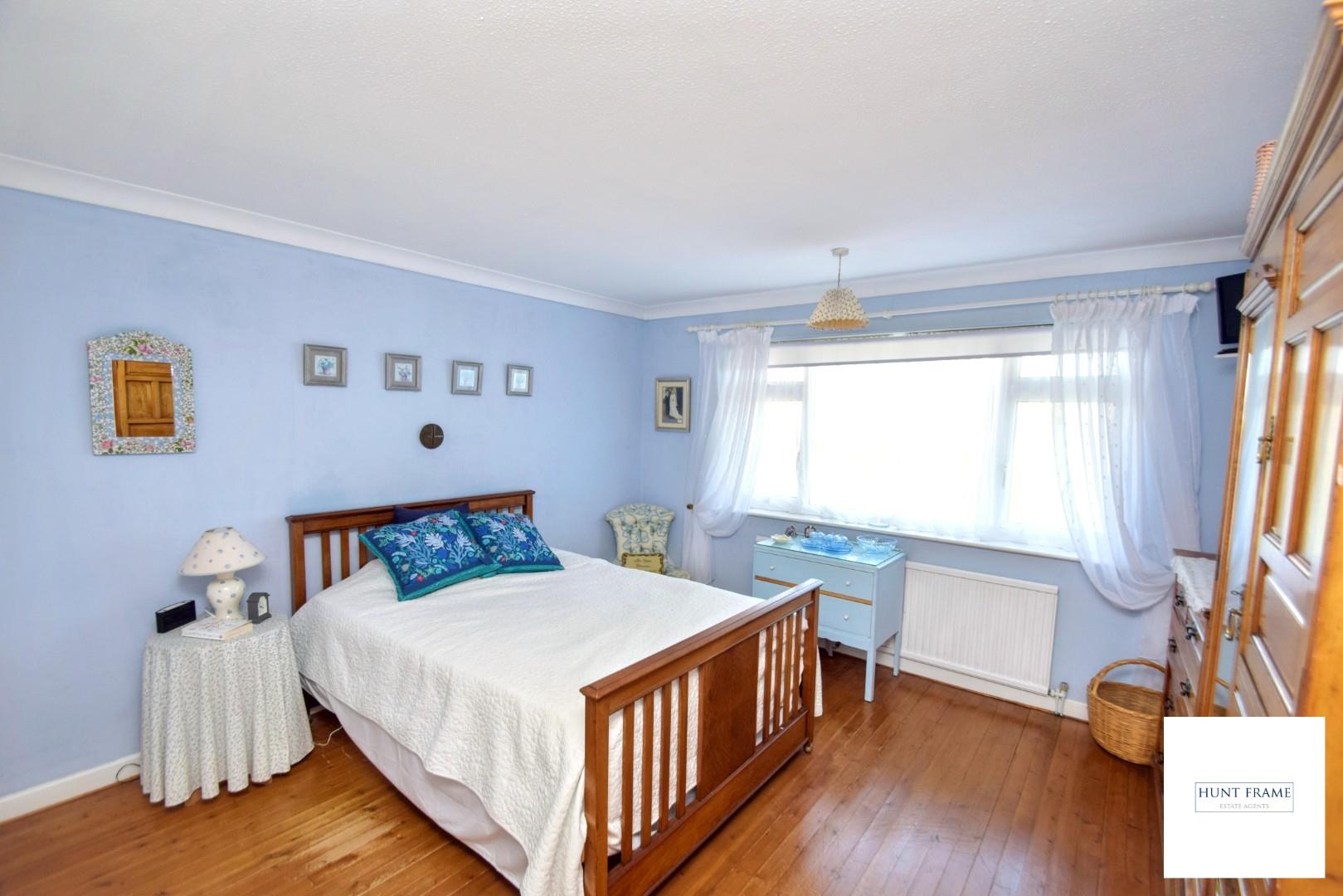 Spacious principal bedroom with a run of triple fitted wardrobes with storage above, radiator, further space for freestanding furniture, stripped Pine flooring, UPVC double glazed windows the rear aspect with views over the garden and Willingdon beyond.