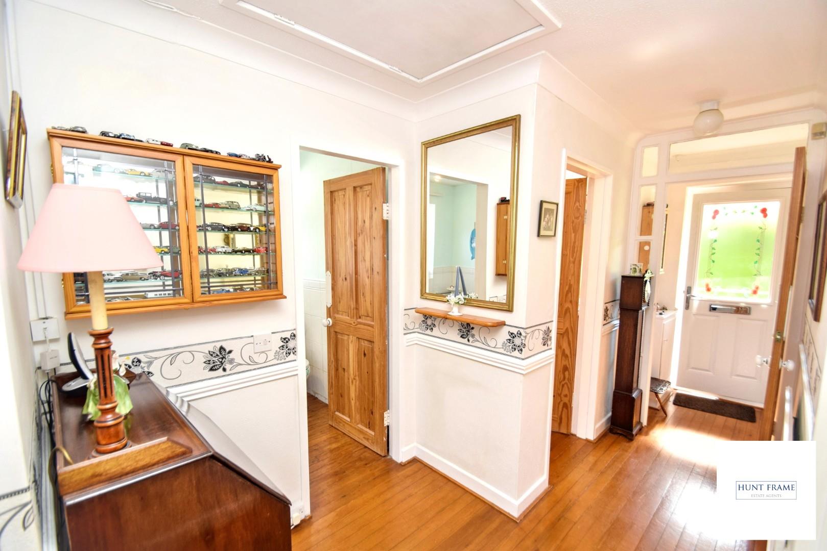 Covered entrance porch with a composite entrance door with a glazed panel with leaded light detail, access into the lobby with half tiled walls, a cupboard conceals the consumer unit with storage beneath, stripped Pine flooring, wooden and glazed door into the hallway, with a radiator, loft access and a cupboard which has the hot water cylinder, stripped Pine flooring, doors off to both bedrooms, sitting room, bathroom and kitchen.