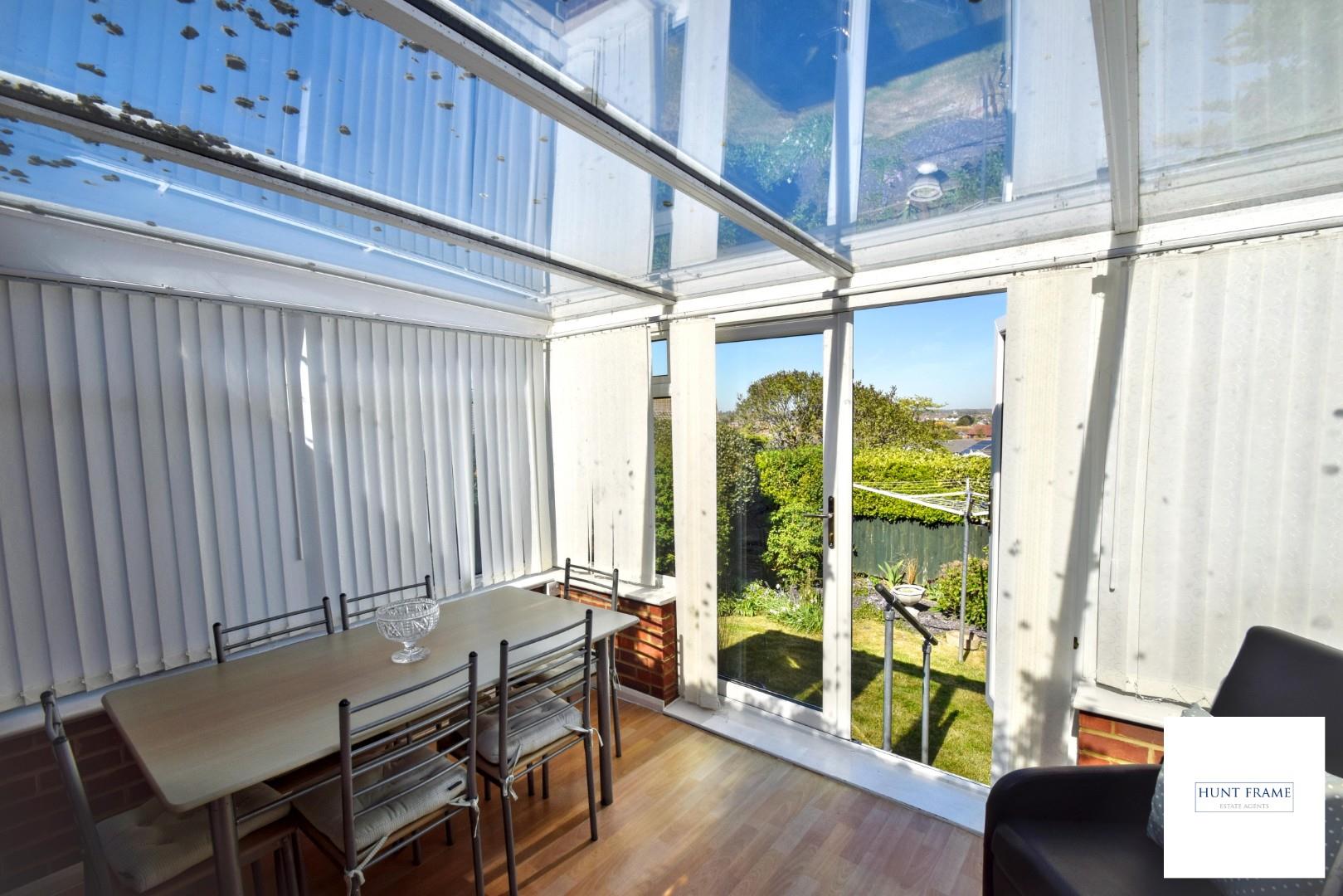 Vinyl flooring, radiator, of dwarf brick wall construction with UPVC double glazed windows above with a glazed roof, double opening French doors overlooking and giving access to the gardens with lovely distant views over Willingdon and beyond.