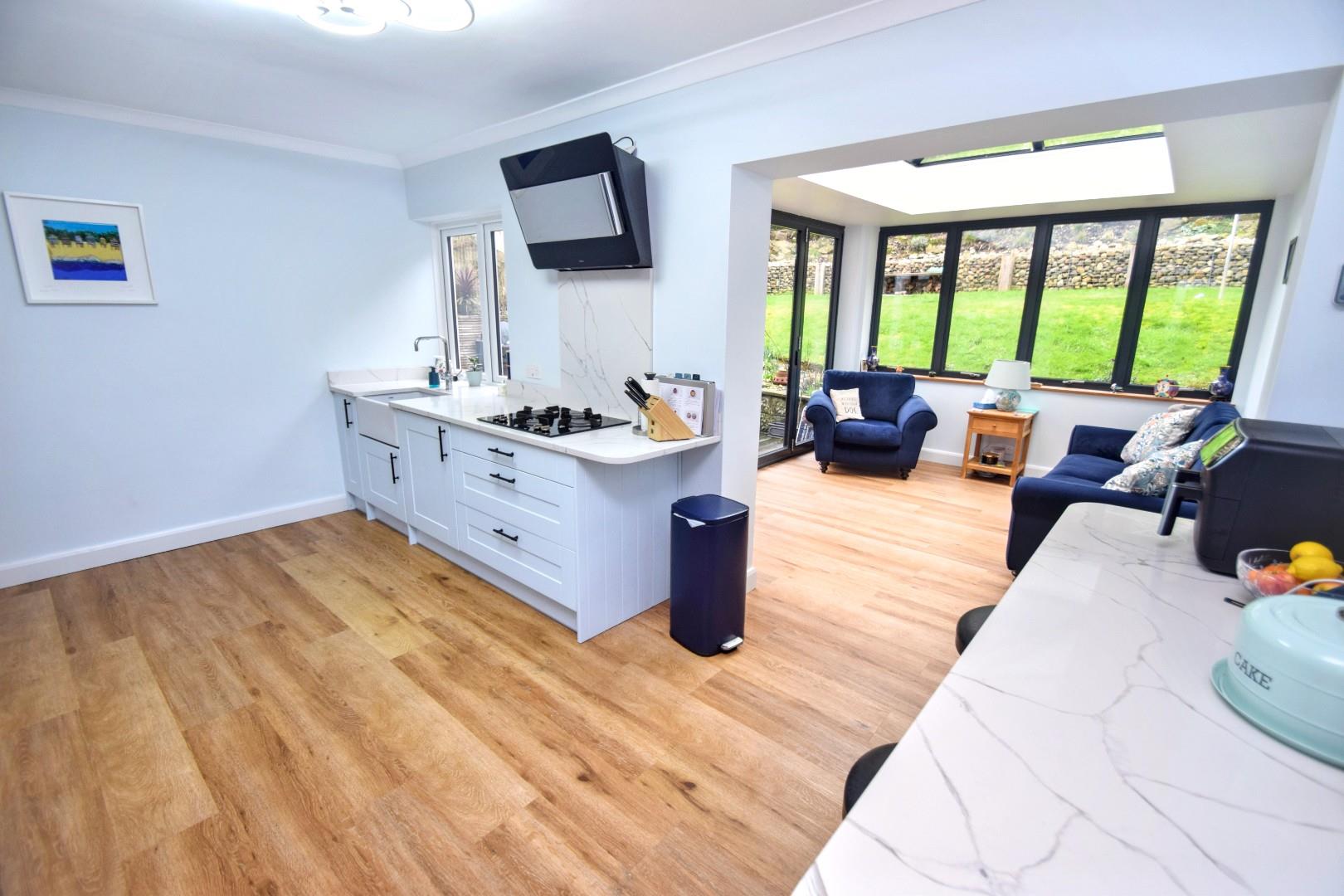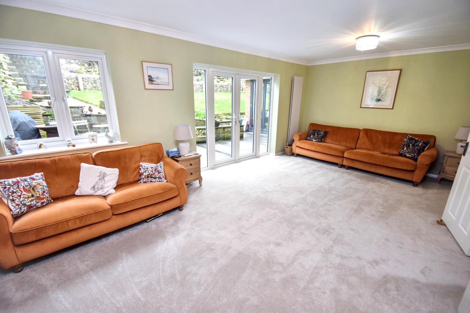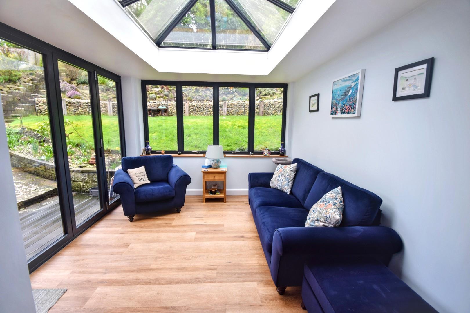 Four panel bi-fold doors opening onto adjoining terrace and garden. Feature glazed atrium.