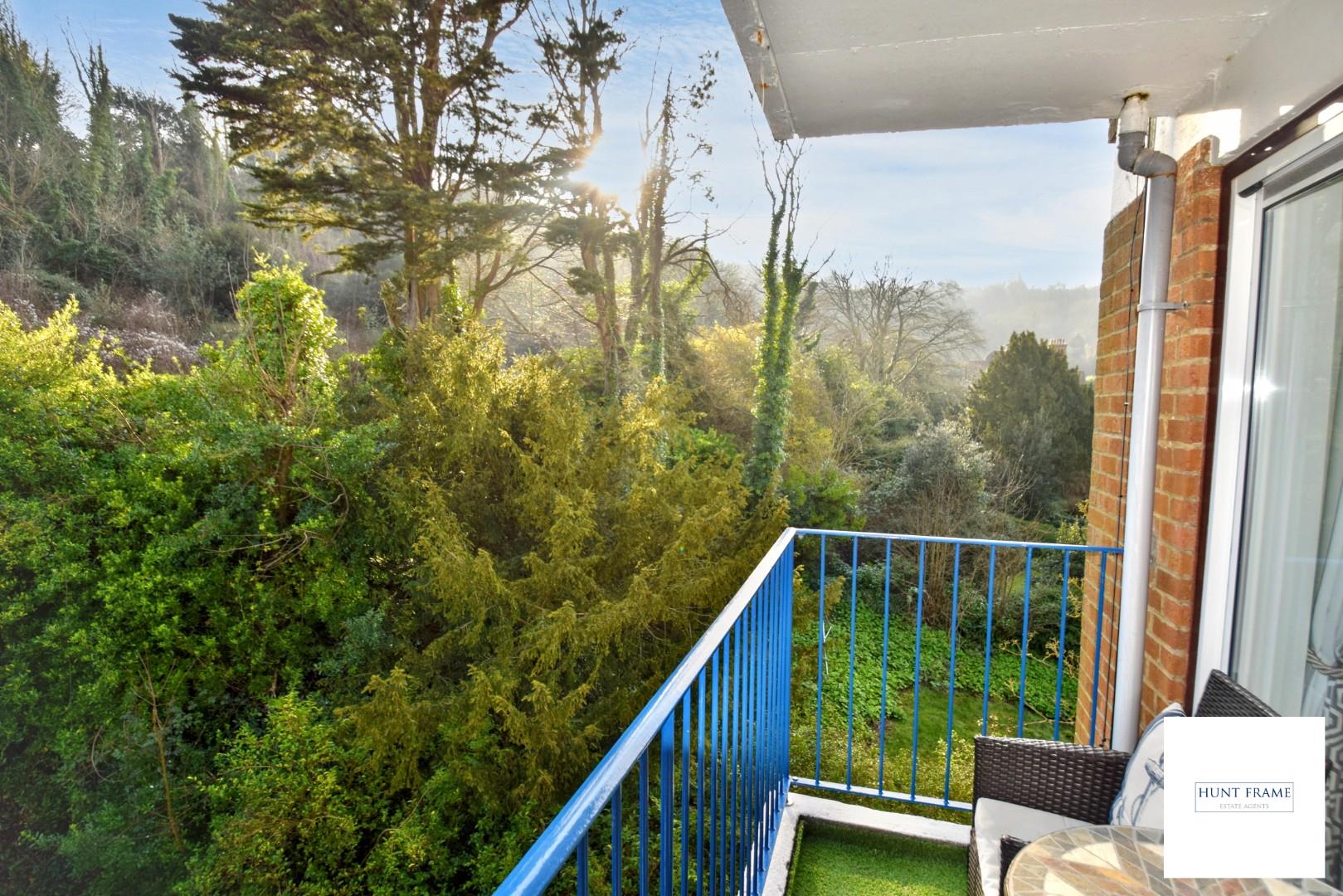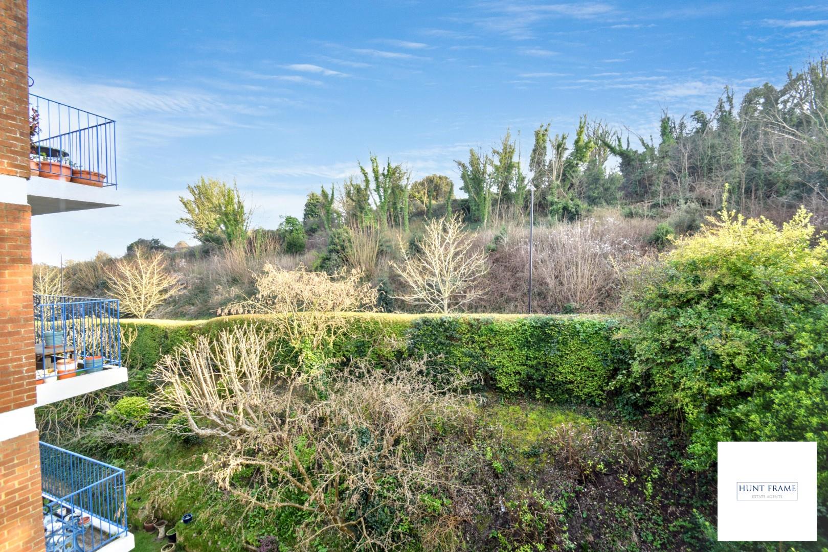 With an open aspect to the rear of the building, with space for a table and chairs with an outlook over the communal gardens and downland beyond.