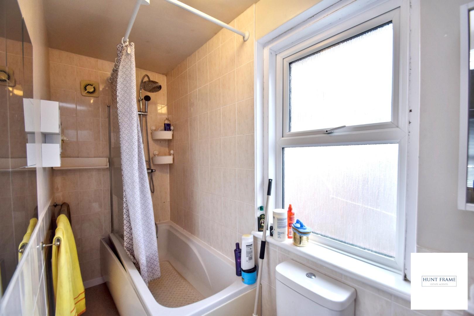 Comprising of a panelled bath with twin headed shower system, low level Wc, wash hand basin, part tiled walls, radiator, UPVC double glazed patterned window to the rear.