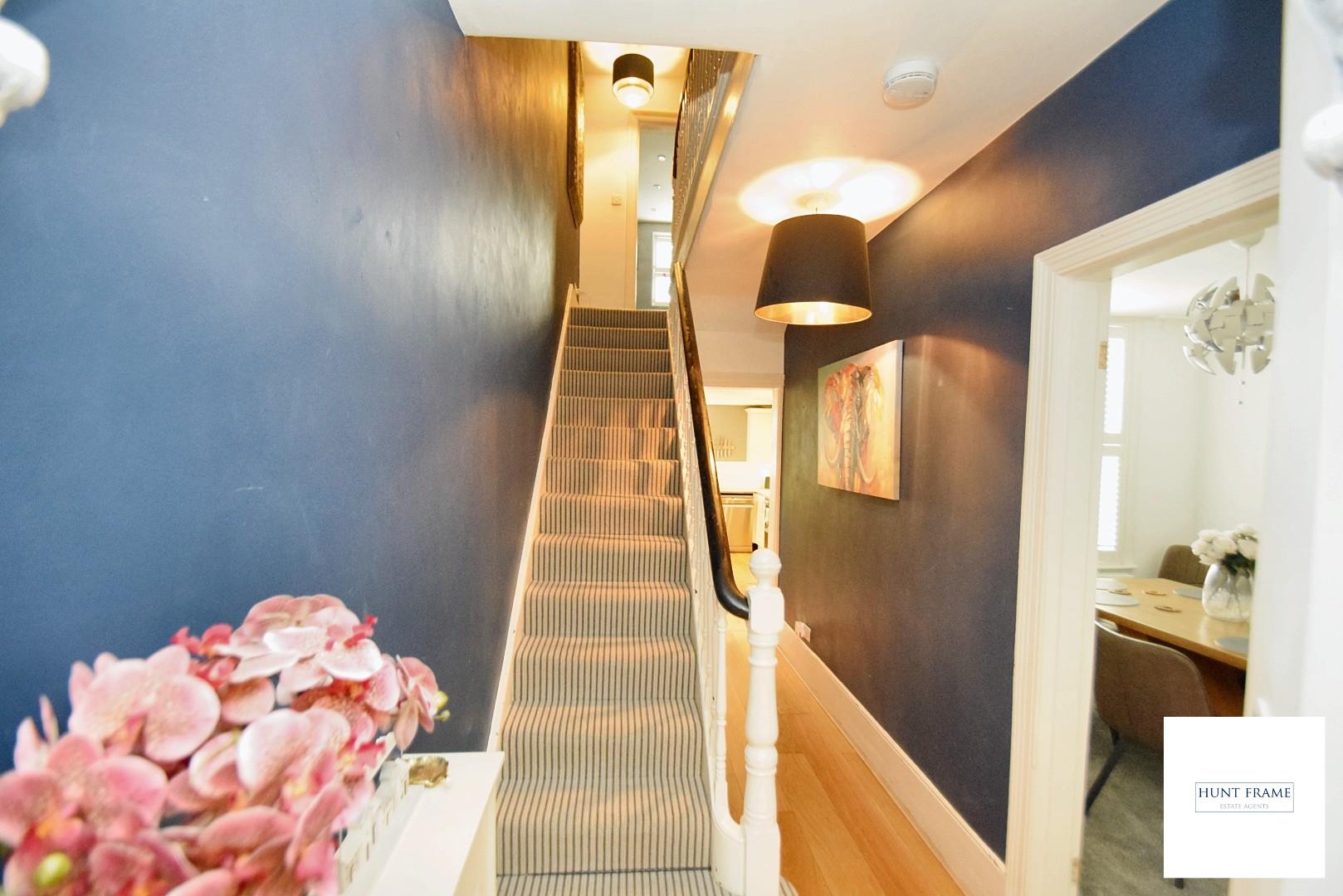 Staircases to the first and lower floors, doors off to the sitting room, dining room and kitchen.