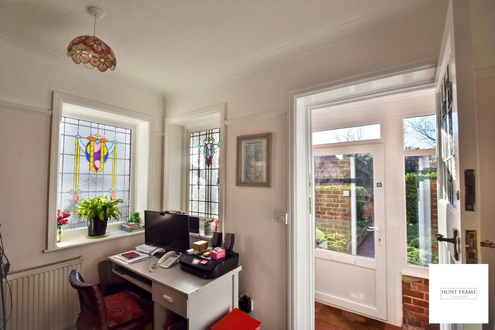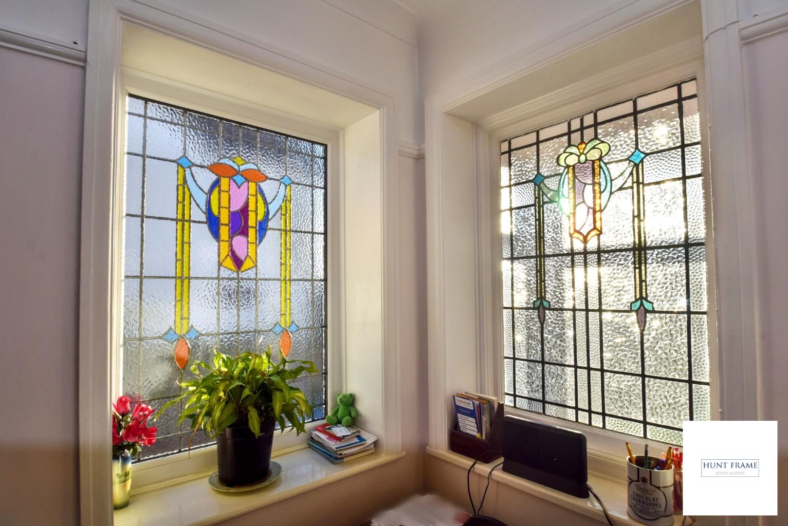 Dual aspect with an original stained glass window to the front aspect with a matching replacement stained glass window to the side aspect, radiator, period archway to the entrance hallway.