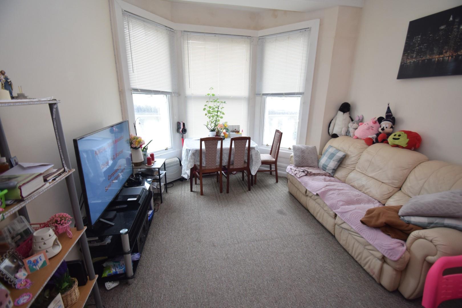 16' 5" narrowing to 13' x 11' (5.00m narrowing to 3.96m x3.43m). Wall mounted electric radiator. Television point. Large bay window to front. Door to: