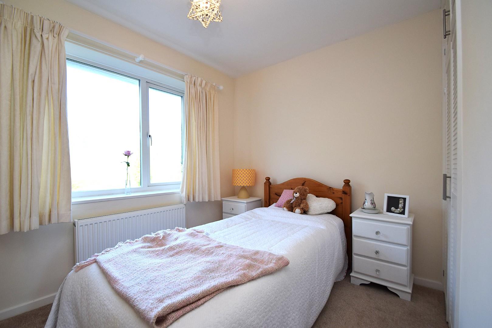 UPVC double glazed window to the rear elevation with views over the gardens, radiator, fitted double wardrobe with storage above, adjacent matching single wardrobe with again storage above.