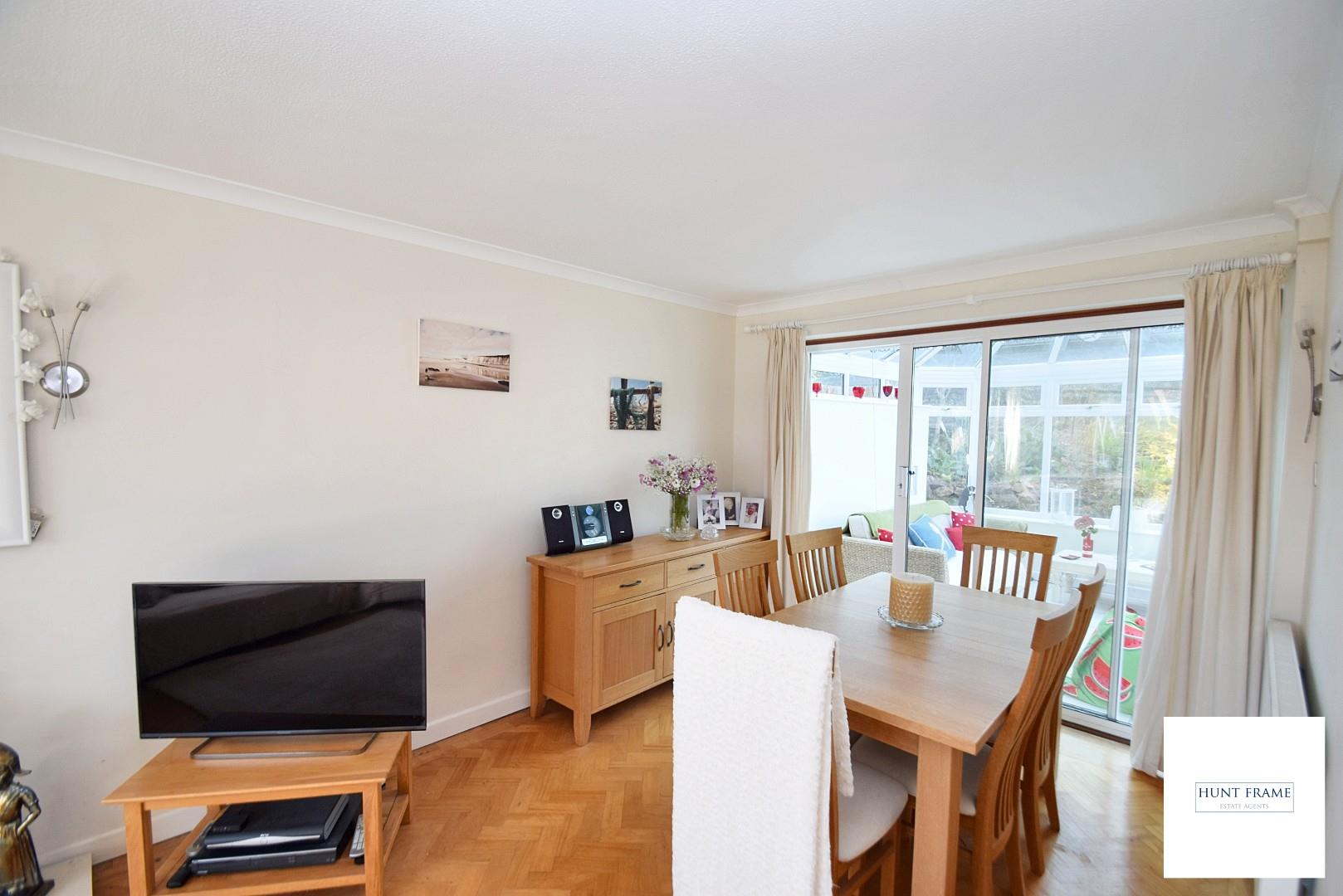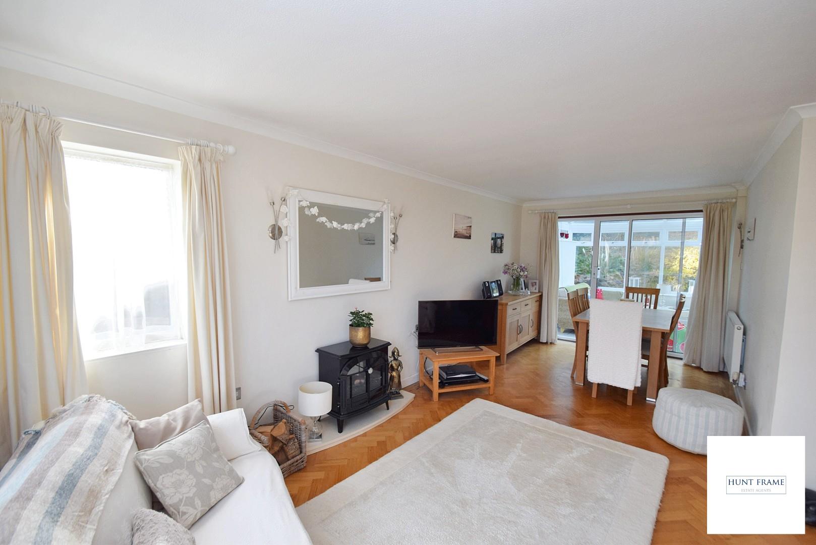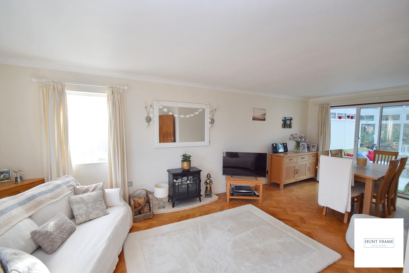 Double reception being triple aspect with UPVC double glazed windows to the front and side elevations with the front having over rooftop views, sliding patio doors give access to the conservatory, parquet wooden flooring, plinth with electric freestanding fire, two radiators.