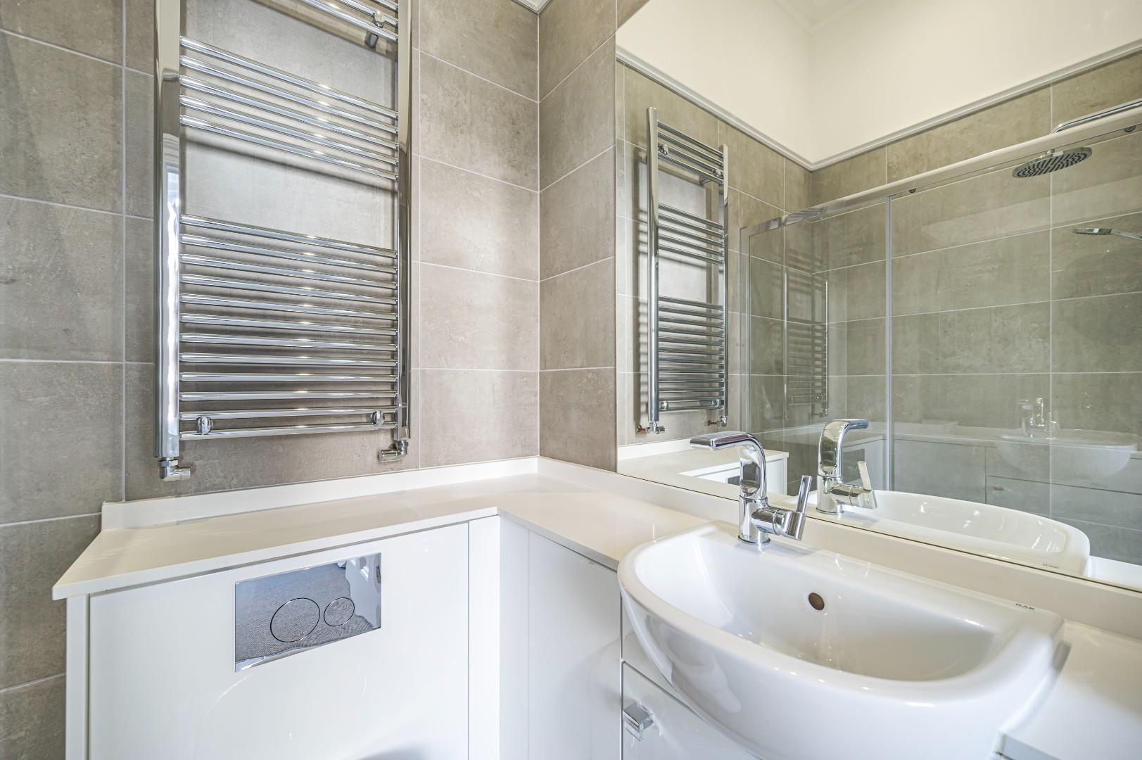 Bay window to front, period style radiator, recessed spot lighting, high skirting boards, cornicing.