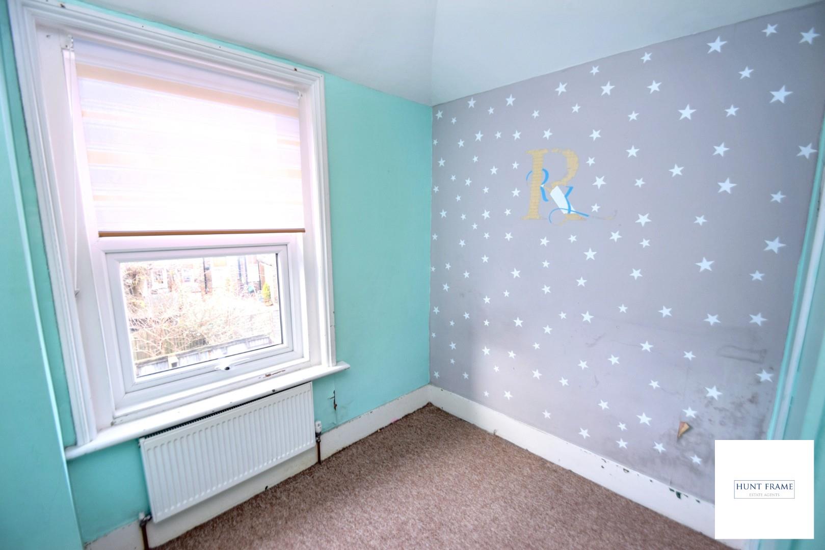 Spacious master bedroom with a UPVC double glazed window to the front aspect, radiator, original fireplace with cast iron insert and grate, secondary loft access.