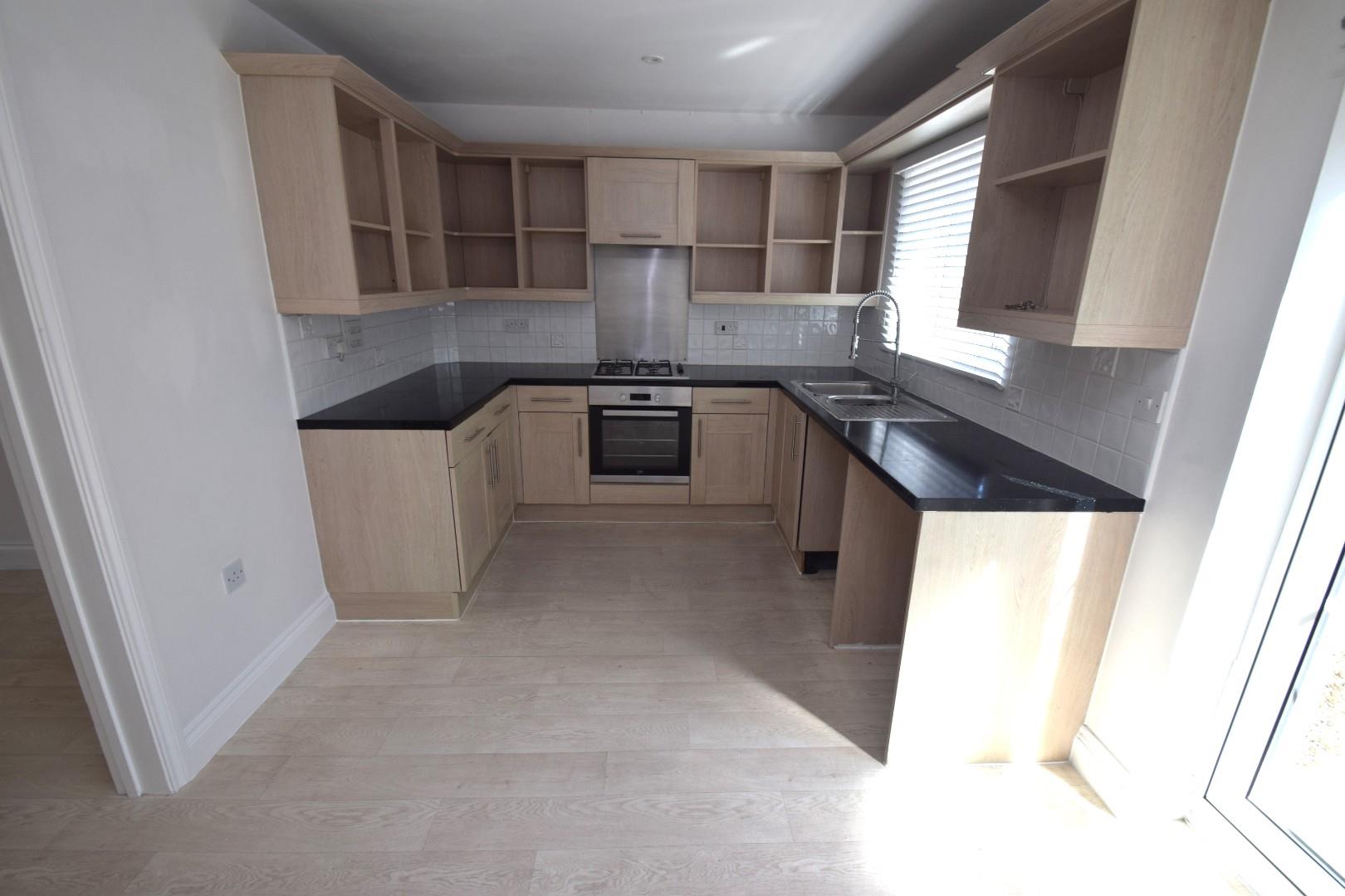 Kitchen/Dining Room 16ft 0in (4m 88cm) x 9ft 0in (2m 74cm) A range of modern fitted units comprising inset stainless steel one and a half bowl sink unit, a range of working surfaces with base unit storage cupboards and drawers below, matching wall mounted storage cupboards above, inset gas hob with extractor hood above, built in electric oven, radiator, spaces for washing machine and dishwasher, space for upright fridge/freezer, double glazed window and double glazed French doors to rear garden.