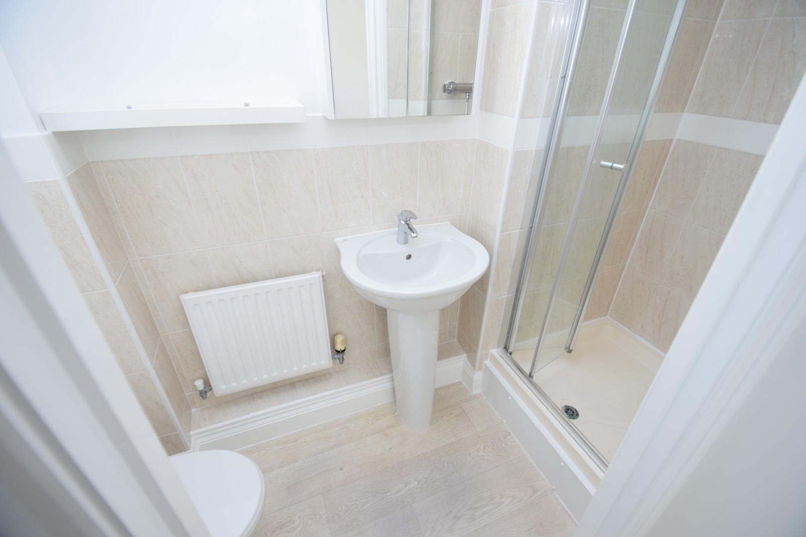 En-Suite Shower Room With fully tiled shower cubicle, fitted shower, low level WC, pedestal wash hand basin, half tiled walls, extractor fan, double glazed window.