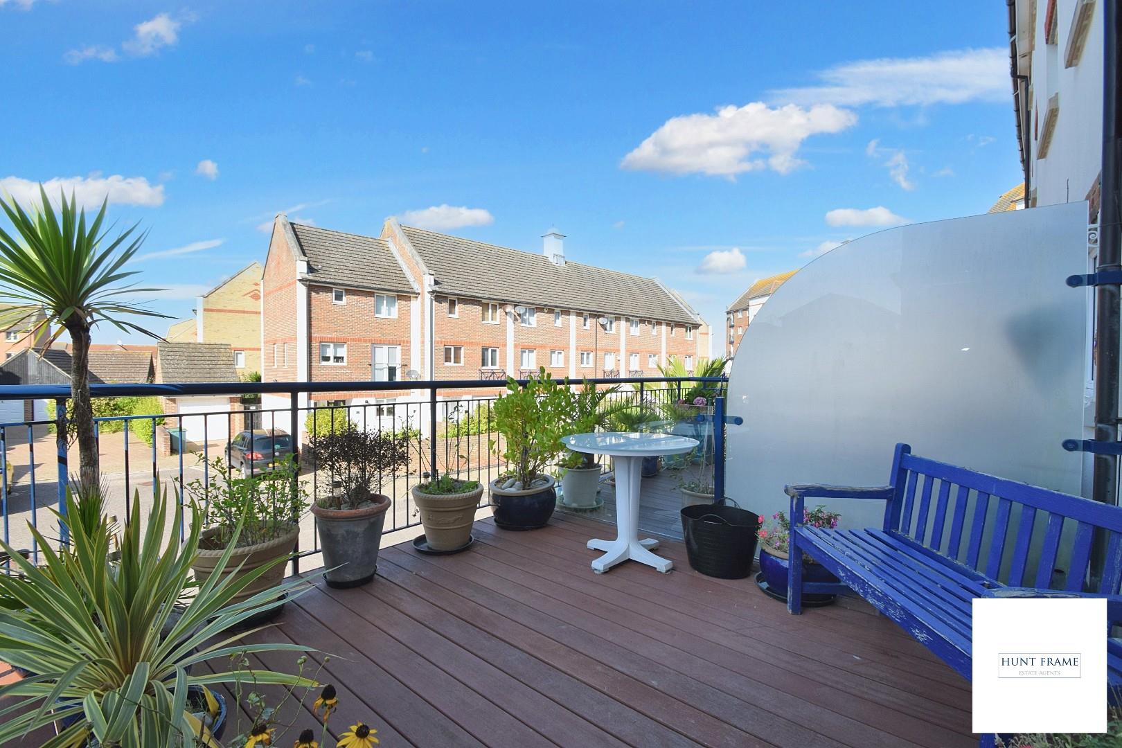 Accessed from the main entrance and first floor, providing a large, sheltered seating area.