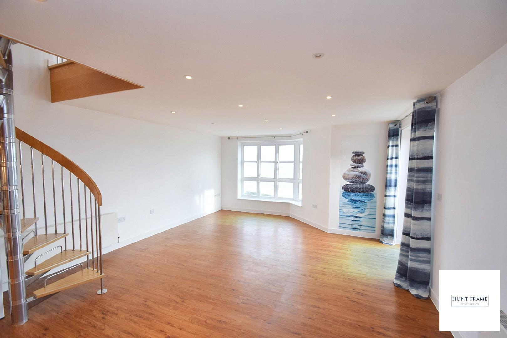 Stunning open plan reception/kitchen of excellent proportions with a UPVC double glazed window to the rear aspect, part bayed with stunning direct coastal views, sliding double glazed patio doors giving access onto the balcony, wood flooring, spiral staircase to the duplex first floor, matching radiators, open to the kitchen area.