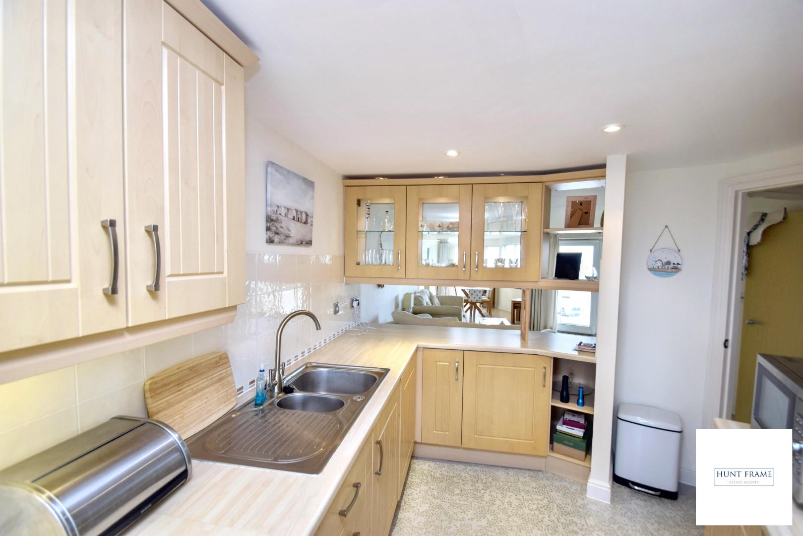 Fitted with a modern range of floor standing and wall mounted units with worktop space, inset one and half bowl sink unit, partly tiled walls, under unit lighting, integral washing machine and dishwasher, fitted single oven with a four ring electric hob and extractor unit over, kick panel heater, integral fridge and freezer, freestanding combi microwave, oven and grill with an open aspect to the lounge area with back to back glazed cupboards, double glazed window to the front aspect with far reaching views.