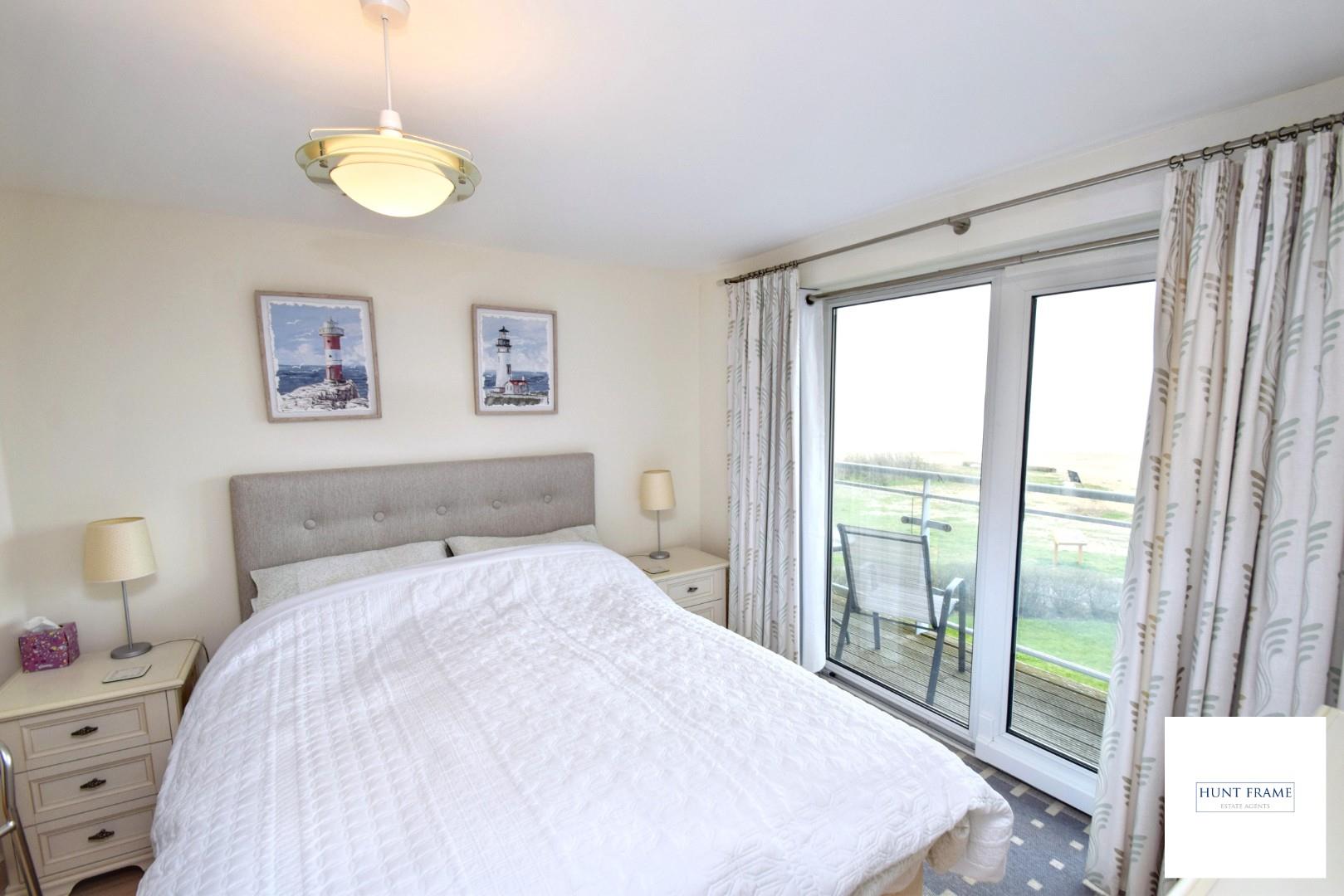With double glazed sliding patio doors giving access to the balcony with direct sea views, wall mounted electric heater, space for freestanding furniture, door to the en-suite, laminate flooring.