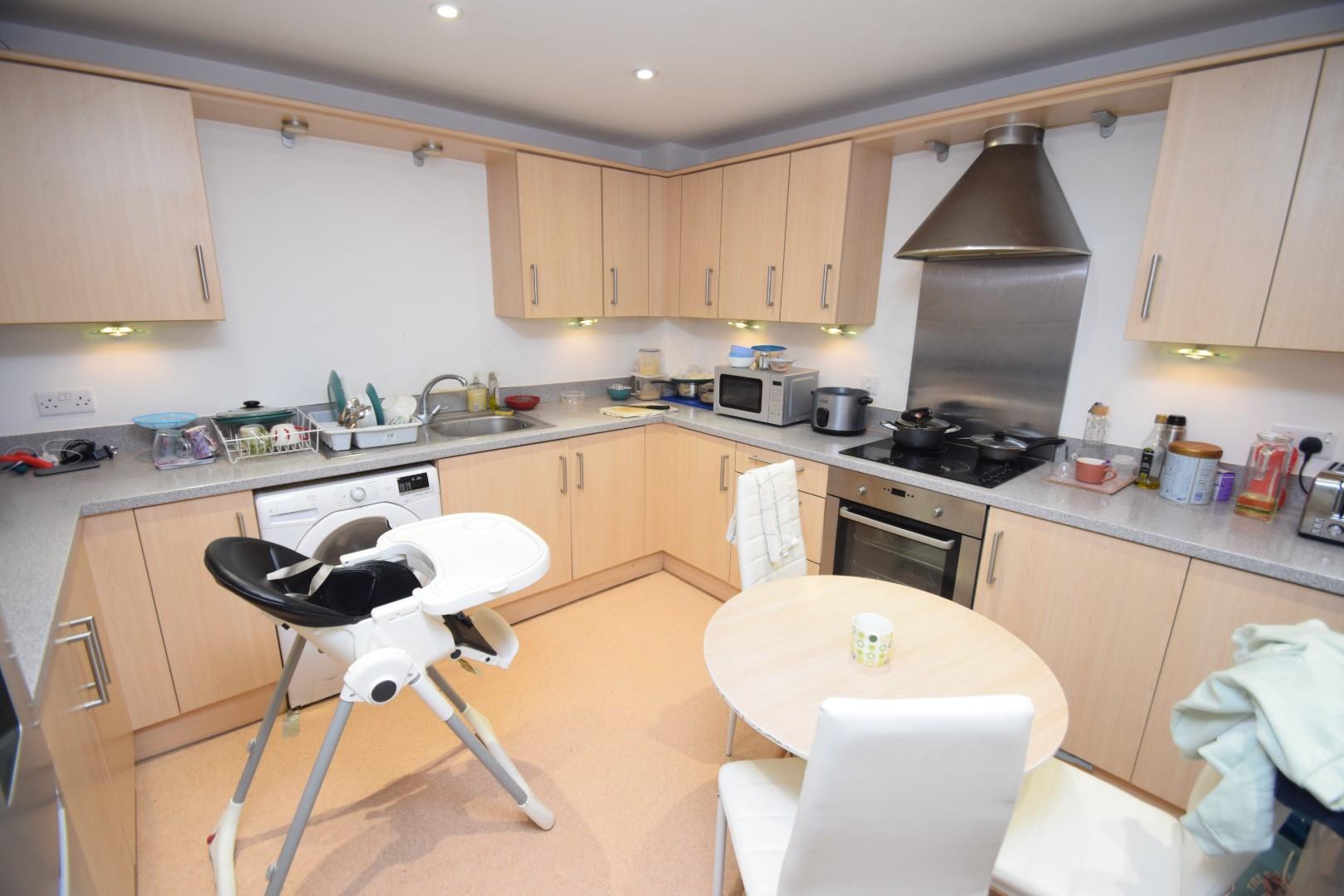 Fitted in a range of wall and base mounted cupboards and drawers. Work tops with inset sink and single drainer unit. Built in oven, hob and extractor. Spaces for washing machine and upright fridge/freezer.
