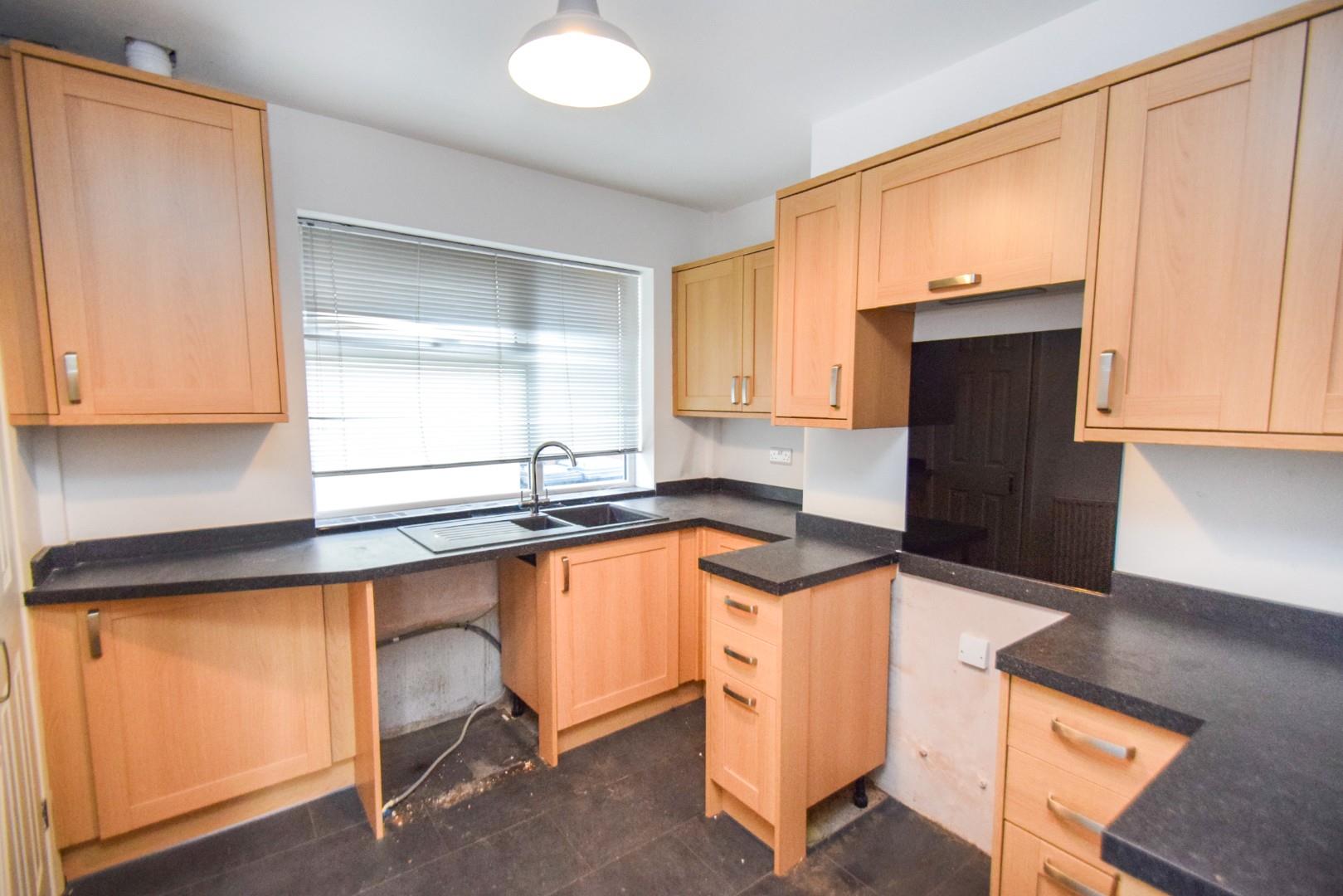 Fitted with a range of floor standing and wall mounted units with worktop space, inset sink unit with mixer tap and drainer, matching up stands, radiator, cupboard concealing the wall mounted boiler, double glazed windows to the side elevation, storage cupboard with consumer unit.