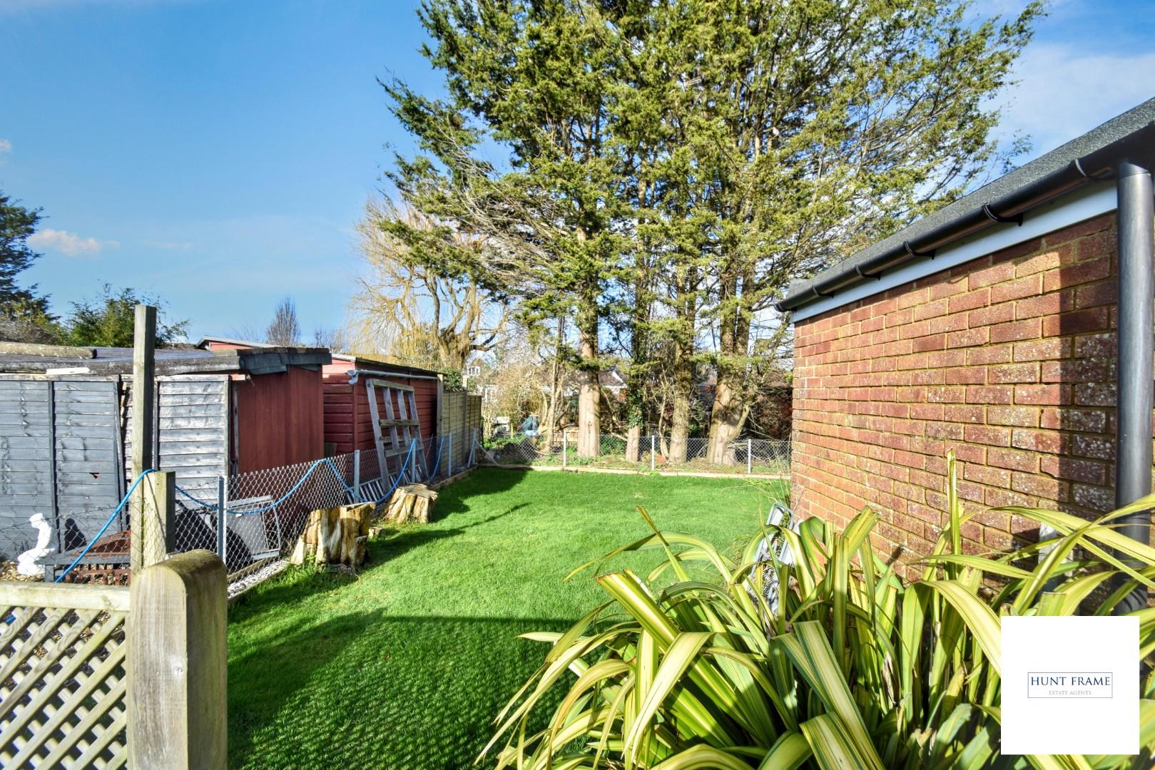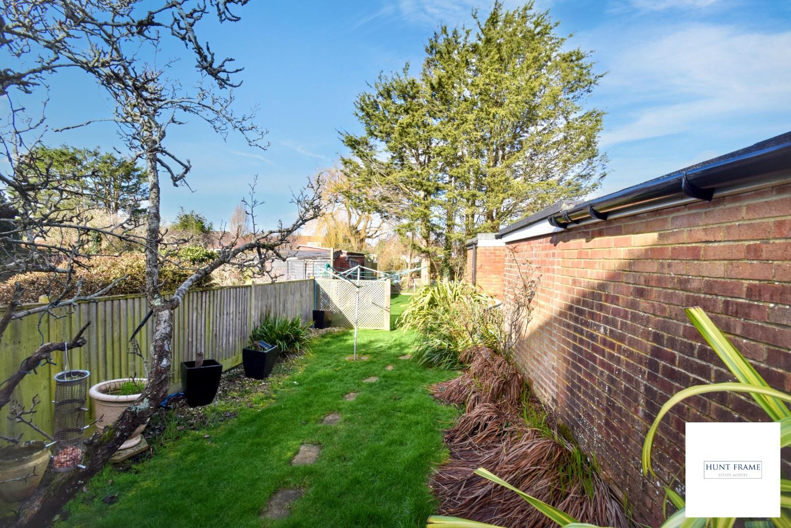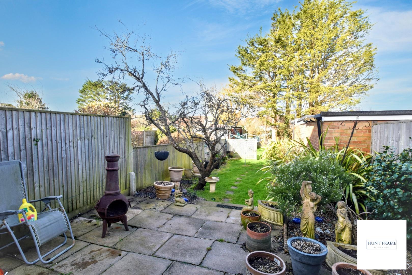 Extensive rear garden, initially having a paved patio which leads to the first area of lawn with fenced boundaries and ornamental borders, the second area of lawn is to the rear of the property, with access to the garage and driveway, distant views of the South Downs.