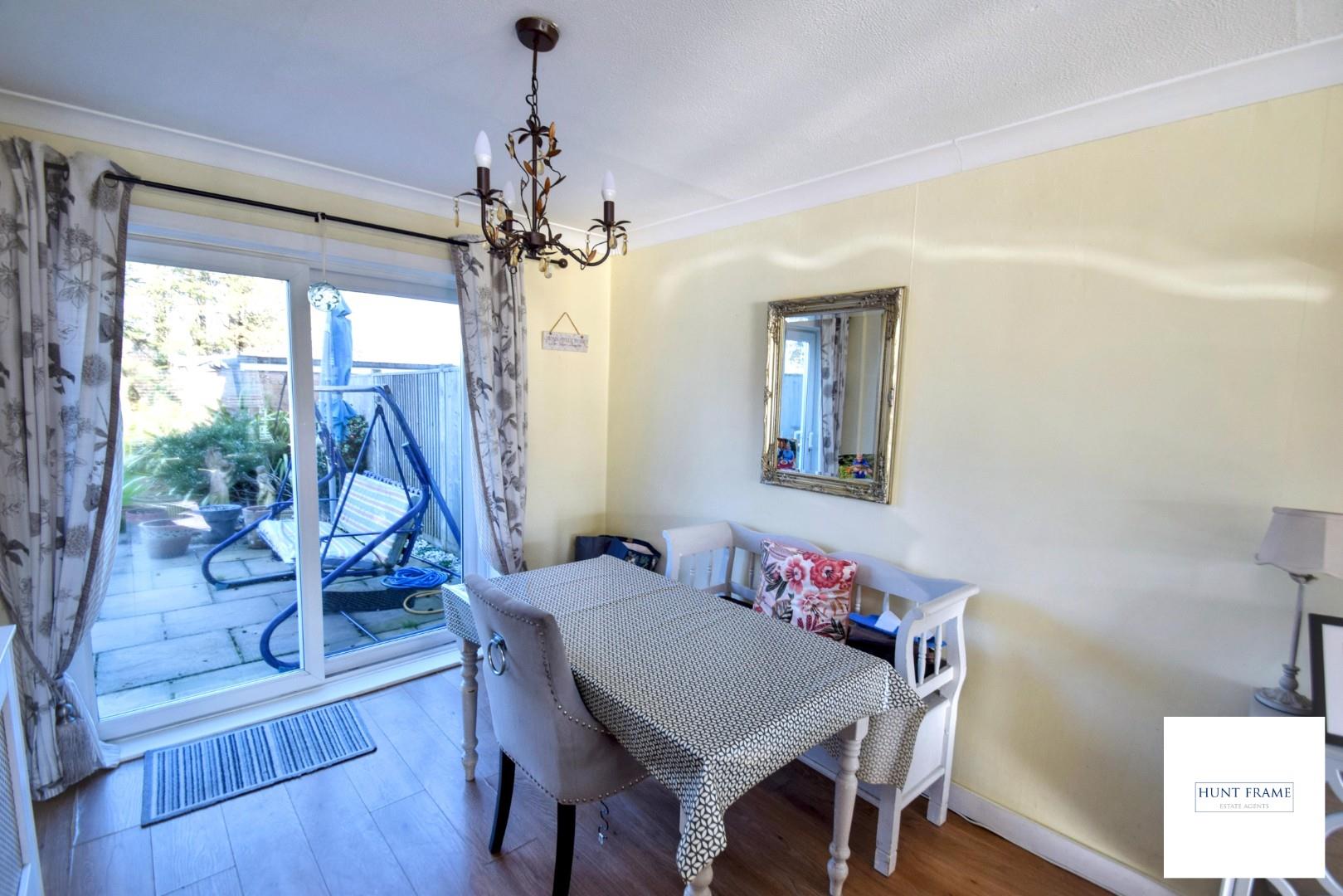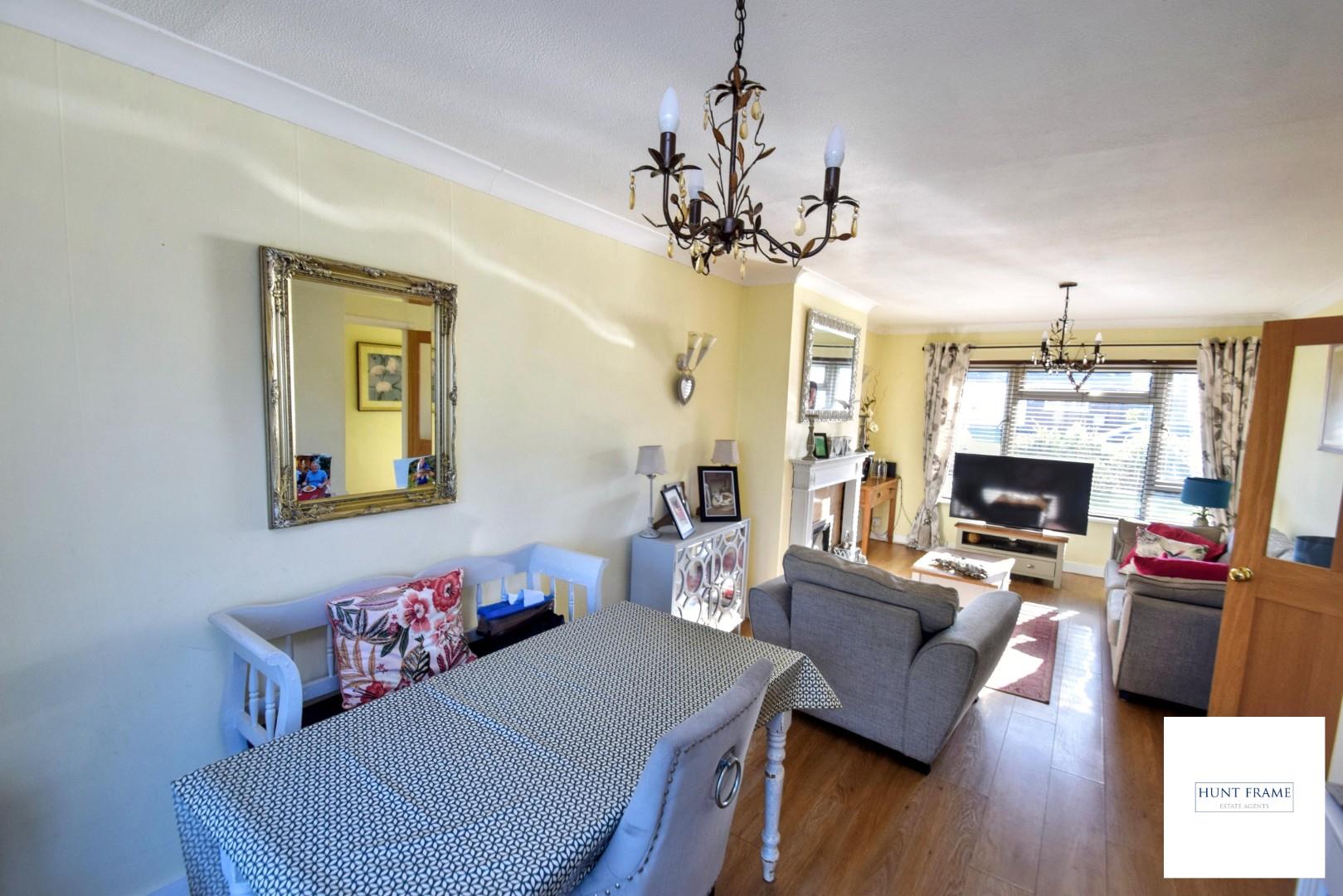 Double reception with sitting and dining areas, UPVC double glazed windows to the front aspect with sliding UPVC double glazed patio doors overlooking and giving access to the rear gardens. Radiator with ornamental cover, wood effect laminate flooring, feature fireplace with ornate surround, mantle and hearth with a matching inset with coal effect fire, serving hatch to the kitchen.