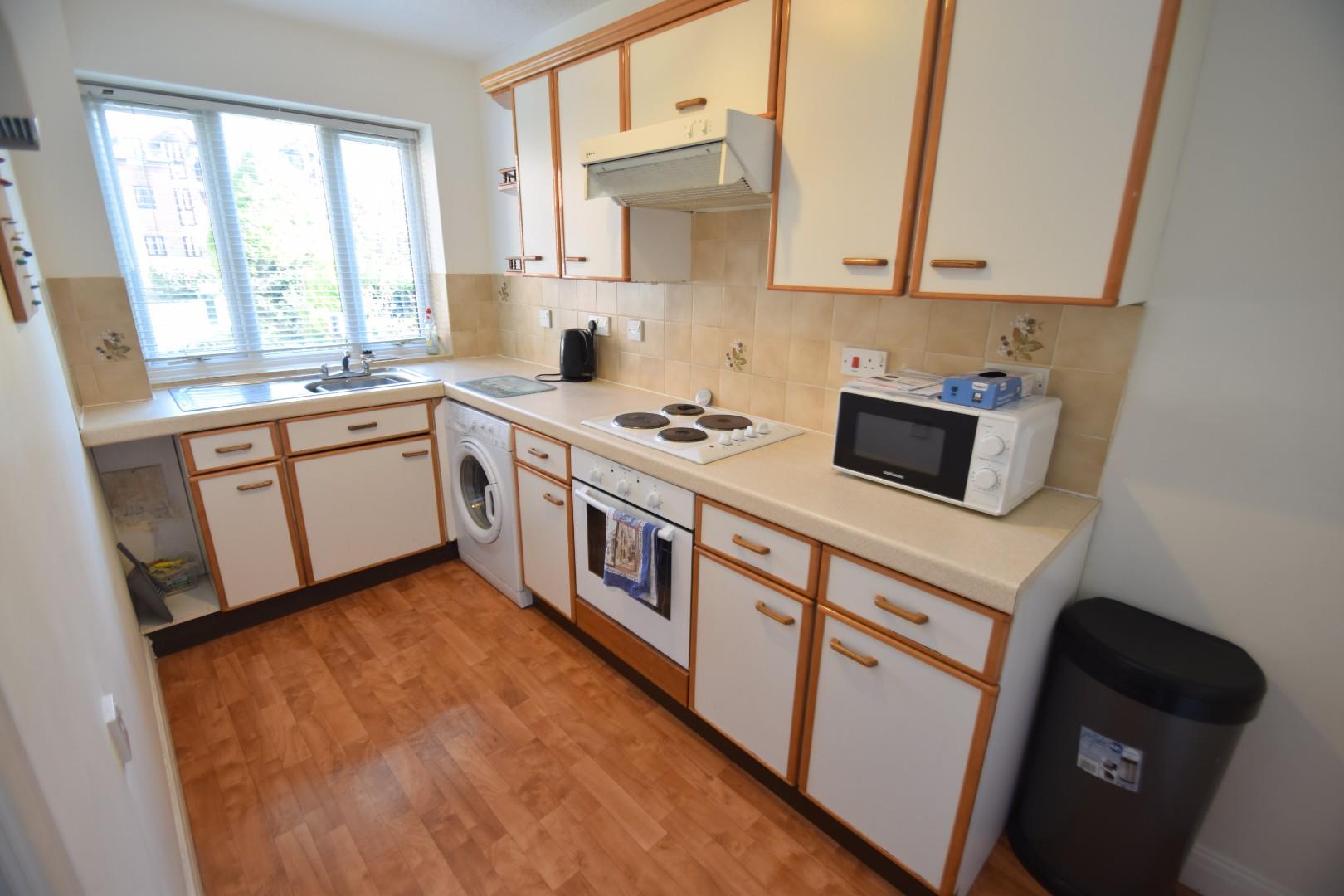 Fitted in a range of wall and base mounted cupboards and drawers. Work tops with inset sink and single drainer unit. Built in oven and 4 ring electric hob with extractor hood above. Spaces for washing machine and fridge/freezer, wall mounted electric heater, double glazed window.