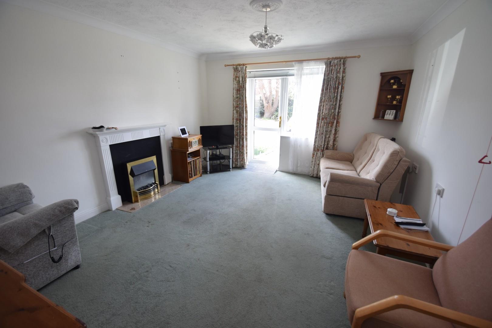 Ornamental fireplace with electric fire. Night storage heater, warden alarm, TV point, double glazed window and door leading on to gardens.