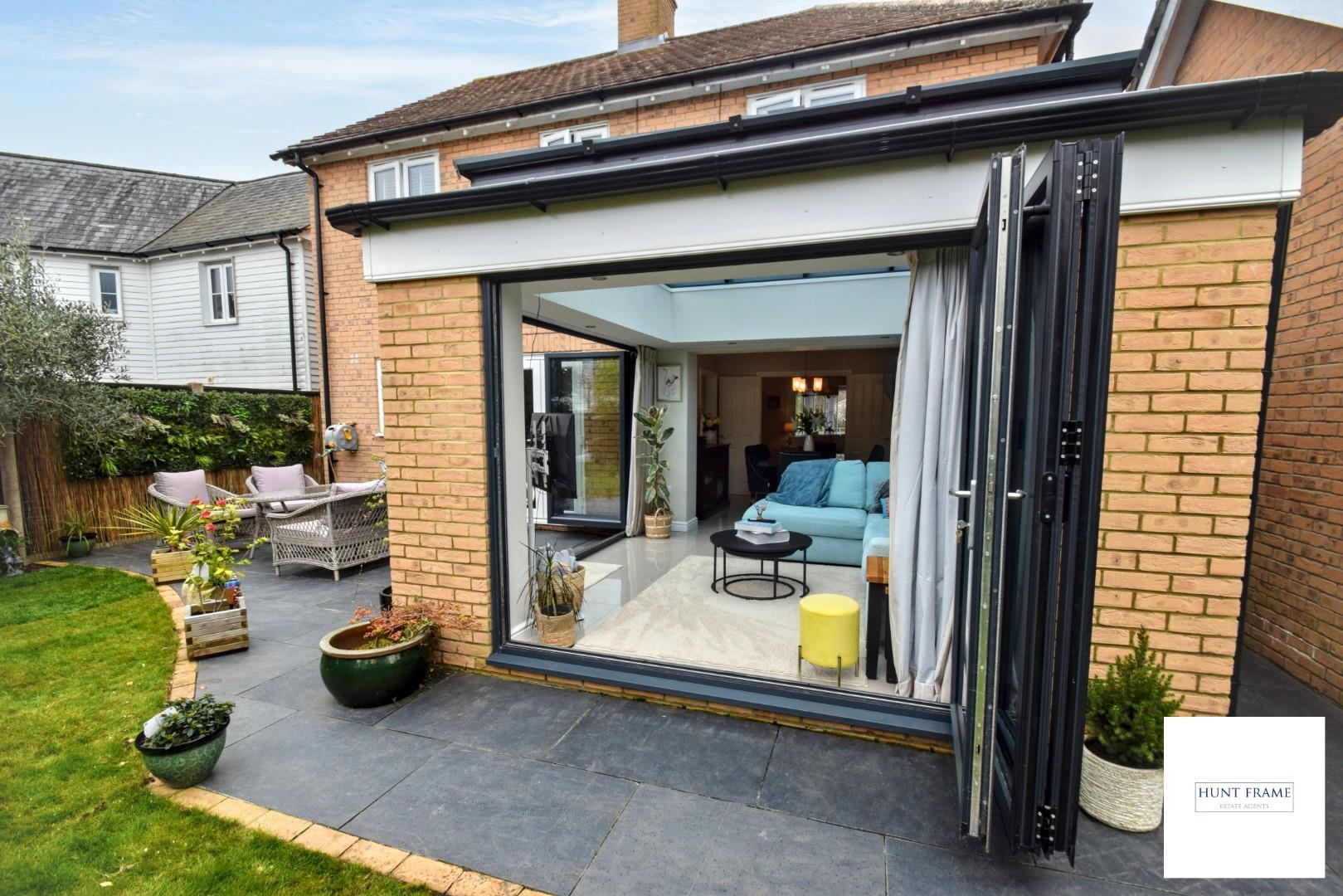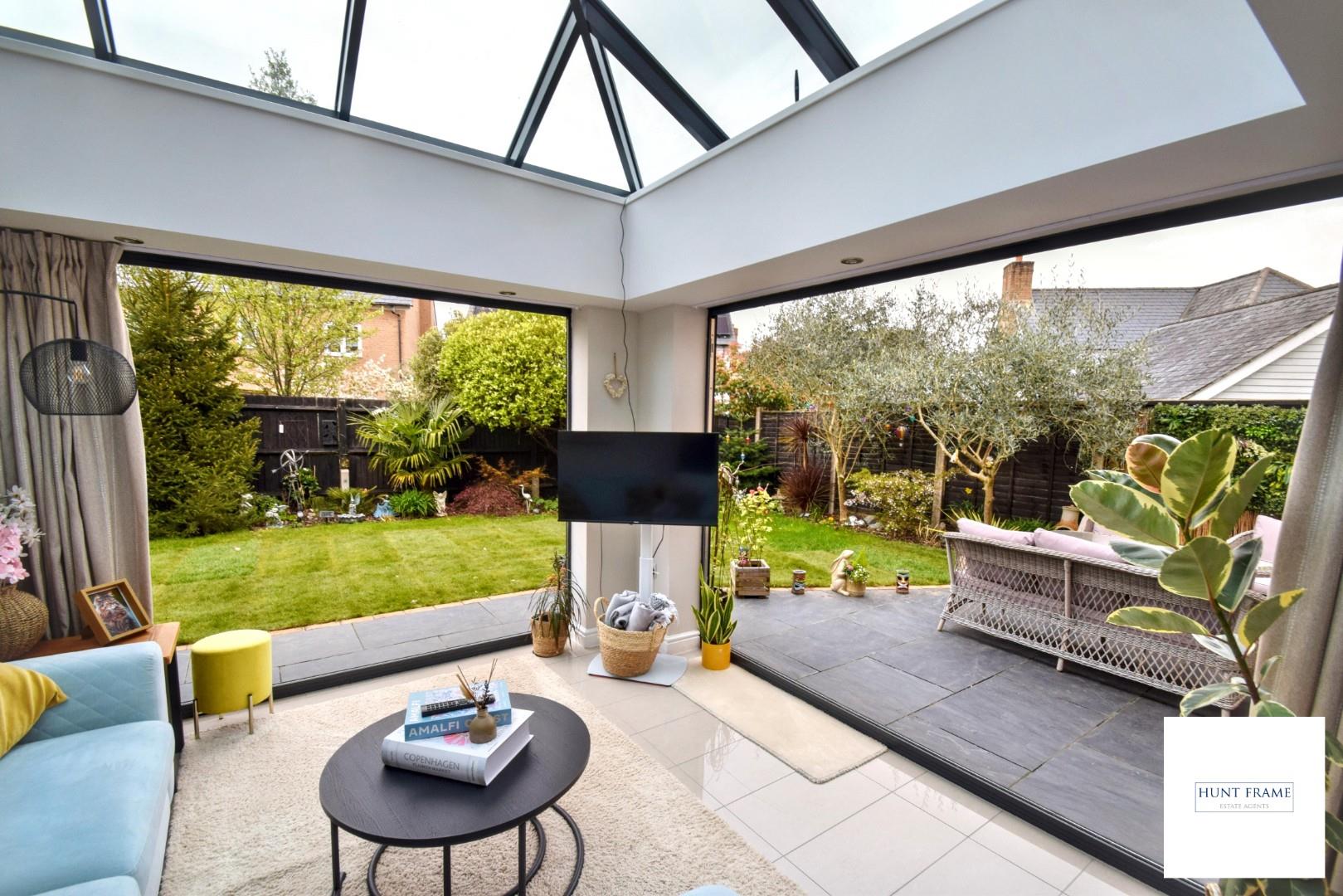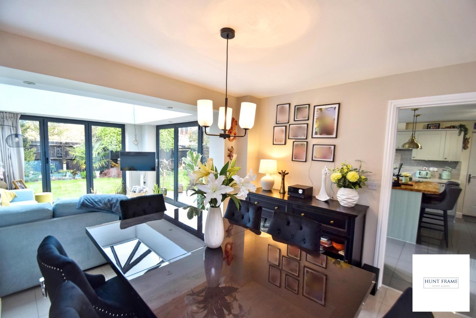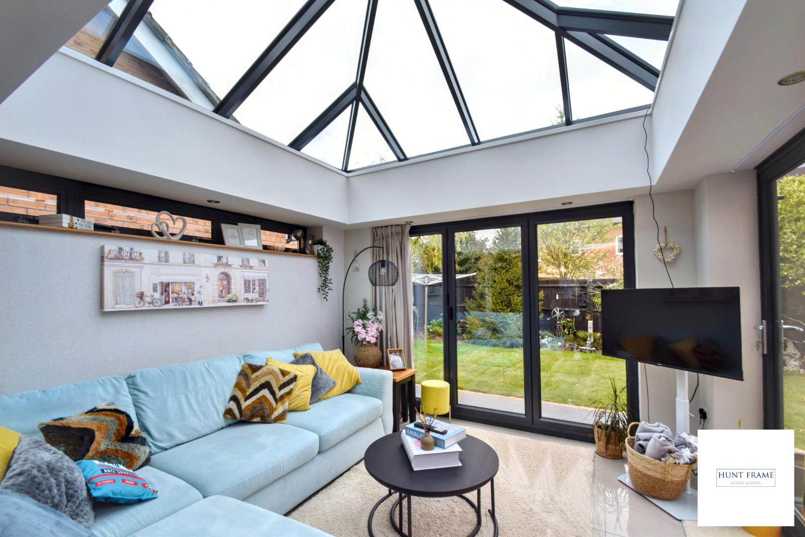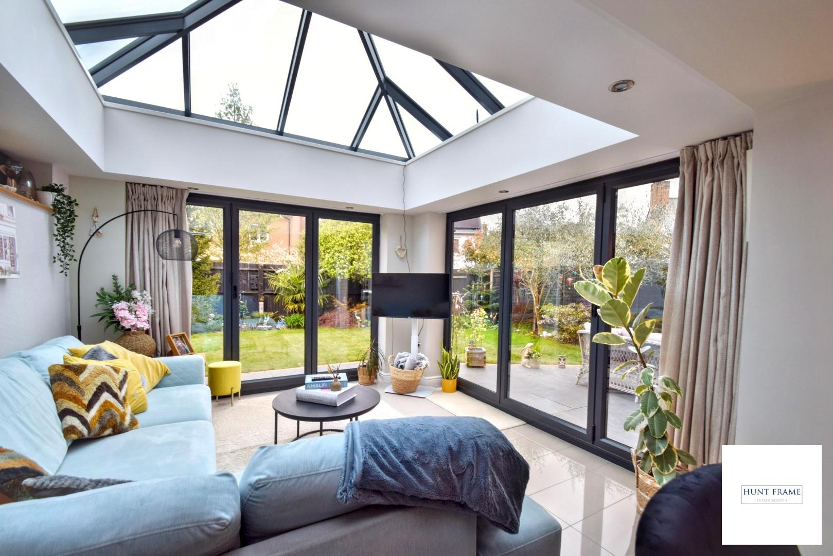 Bi-folding doors to the side and rear aspects with a double glazed window to the side. Feature lantern skylight. Tiled flooring. Inset ceiling LED spotlights. Modern radiator.