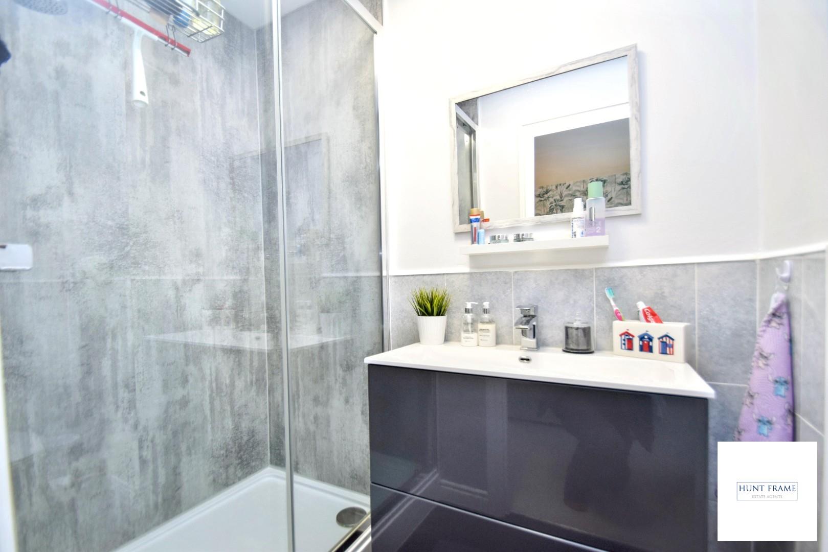 Double glazed opaque window to the side aspect. Fully tiled walls and laminate flooring. Radiator. Extractor fan. Modern suite comprising of a shower cubicle, wash hand basin set within vanity unit and low level W.C.
